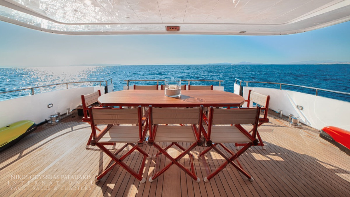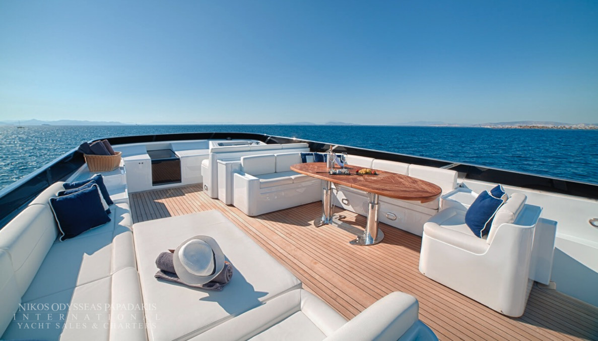 Experience exceptional onboard luxury on this Admiral 26m motor yacht, perfect for family charters or group getaways in the Cyclades, Ionian, or Dodecanese. Indulge in top-tier amenities, including a brand-new sundeck BBQ for al fresco dining and fresh teak decking throughout all outdoor areas, elevating your yachting adventure.