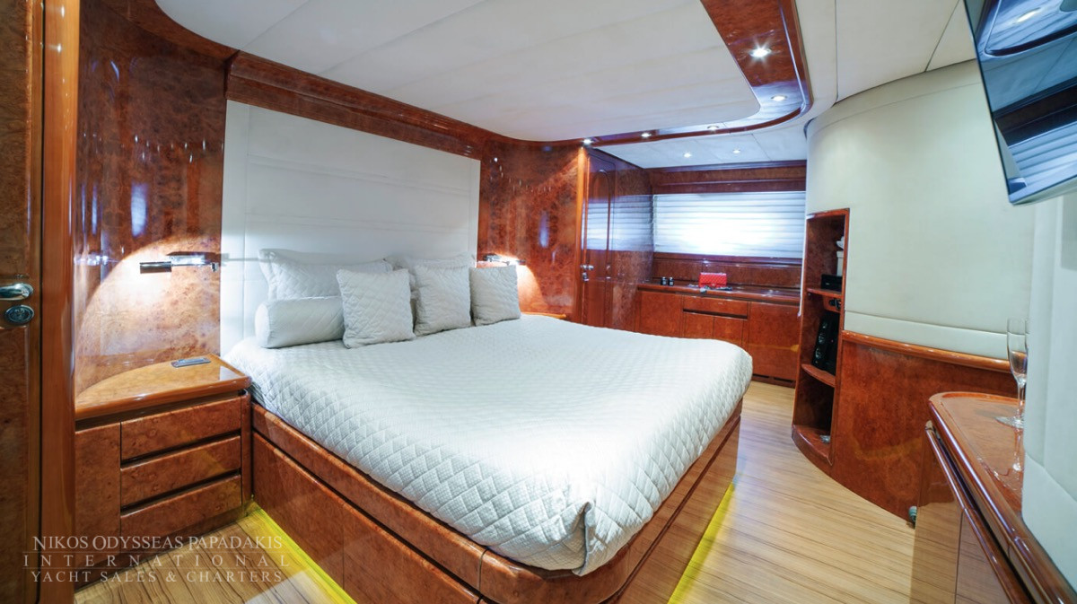 - Master Cabin: King-size bed, walk-in closet, en-suite bathroom