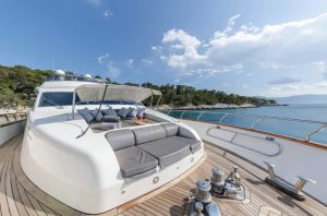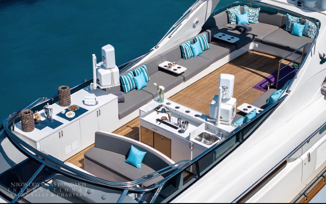 Leopard 26 Flybridge for charter in Greece – Fresh from 2025 refit – 9 Guests – 4 cabins – Spacious exterior living spaces!