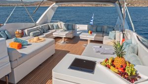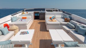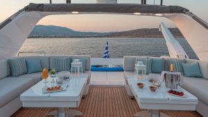 A professional crew of six, led by experienced Captain Vasilis Mazis with stellar yacht charter references, delivers unforgettable Sanlorenzo 30m charter experiences across Greece’s stunning islands.