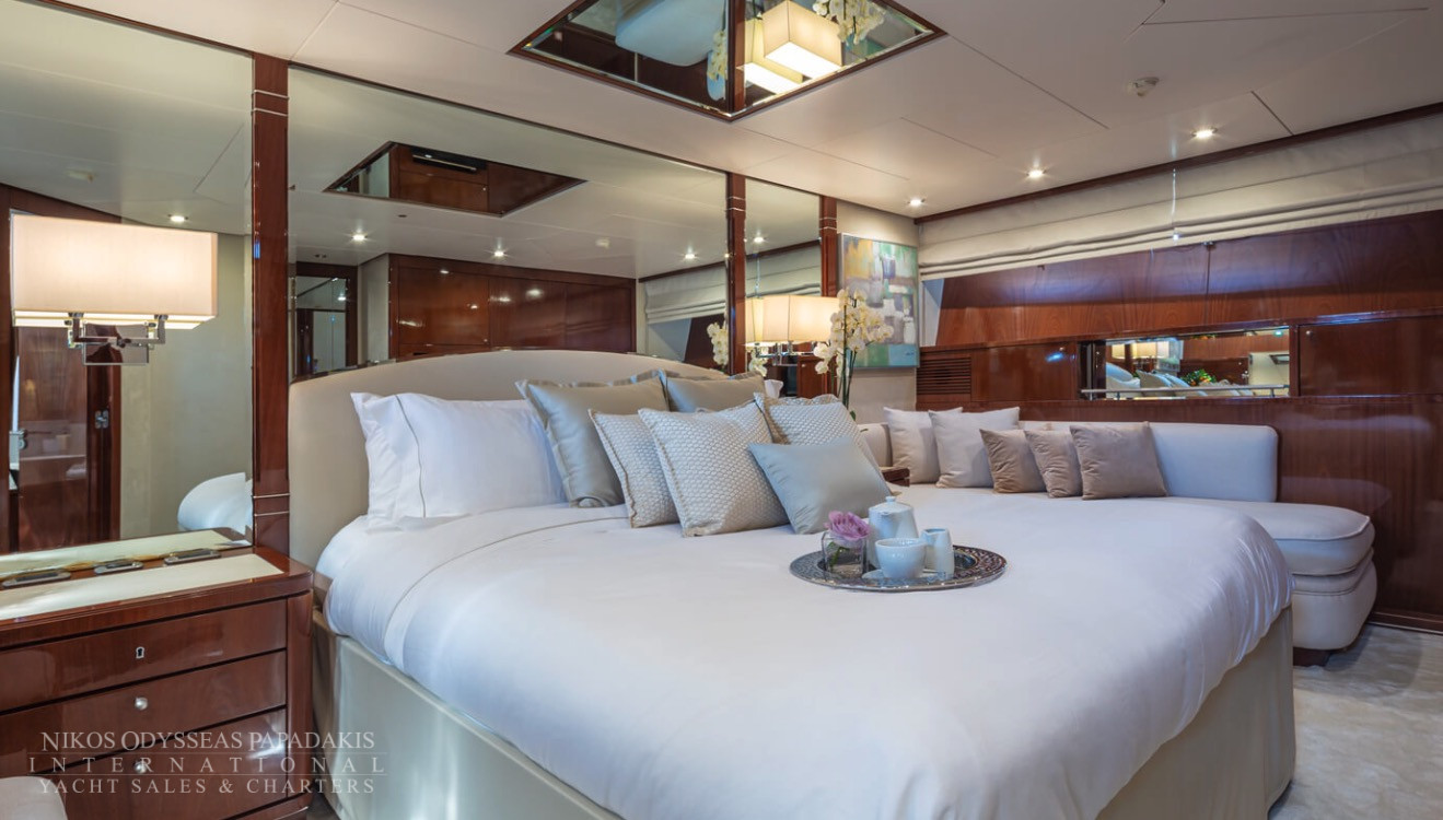 Discover the superb Sanlorenzo 30m available for charter in Greece! Built in 2001 and fully refitted in 2019, this luxury Sanlorenzo 30m yacht embodies elegance, relaxation, and the pinnacle of stylish cruising through the Greek islands.