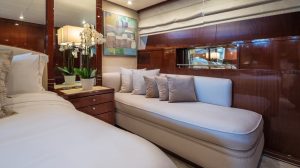 - One Master cabin features a king size bed, double vanity, walk-in wardrobe and ensuite marble bathroom.