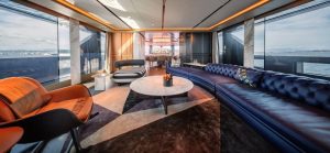 Her expansive exterior decks are thoughtfully designed for both entertainment and relaxation. From the sweeping sundeck with a gold-detailed mosaic swimming pool to the stylish beach club at water level, she invites you to immerse yourself in the yachting lifestyle. Whether you’re sipping cocktails at sunset or enjoying a private moment by the sea, every space is curated for memorable moments.