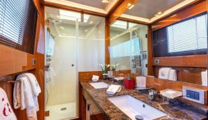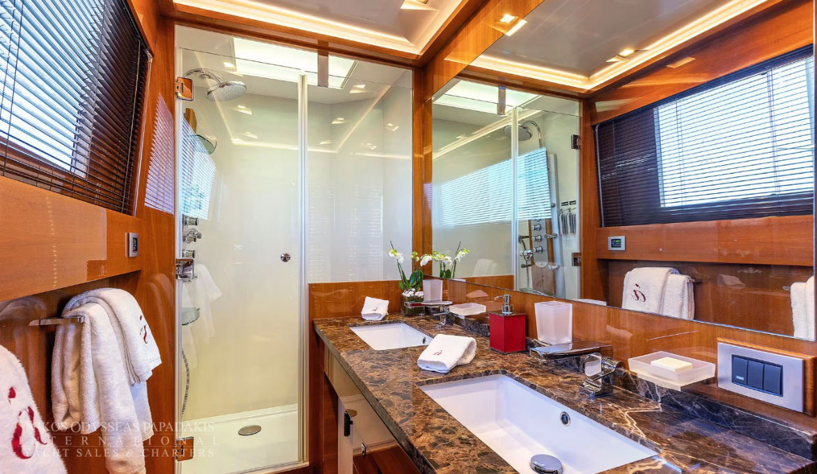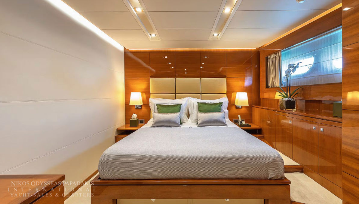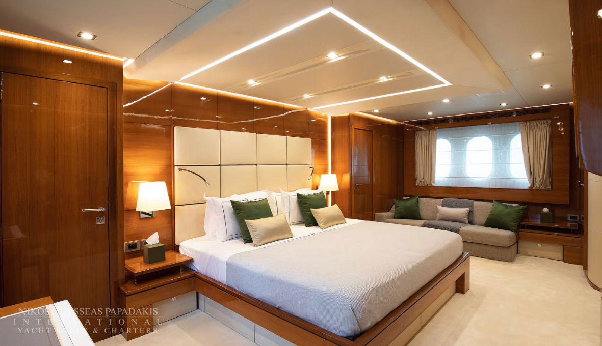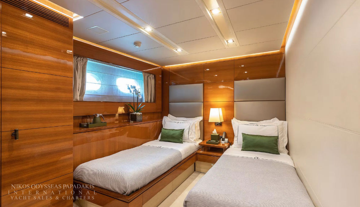 - She provides accommodation for 8 guests across 4 generously sized staterooms, including a full‑beam master suite and a full‑beam VIP suite on the lower deck, ensuring comfort and privacy.