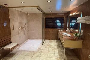 Onboard, guests can enjoy a variety of luxurious amenities, including a main salon with drawing room and formal dining area, an upper lounge with a fully equipped bar, and a guest elevator connecting all decks for seamless accessibility. The exterior pool, with a depth of 1.45 meters, provides a perfect oasis for relaxation and entertainment. The yacht’s expansive sun decks and shaded al fresco dining spaces are ideal for socializing, sunbathing, or enjoying panoramic sea views.