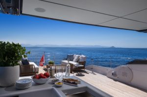 Ferretti 1000 embodies the perfect balance between indoor and outdoor living. Expansive windows, open-air areas, and cleverly designed spaces create a refreshing, alfresco ambiance that enhances the sense of connection to the sea. Whether dining on the aft deck, relaxing in the salon, or enjoying panoramic views on the flybridge, every detail is designed to deliver an unparalleled yachting lifestyle.