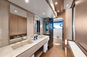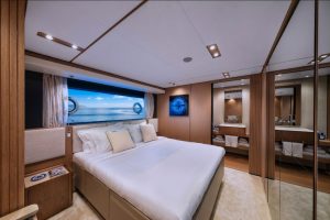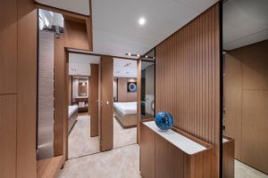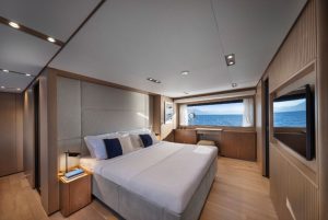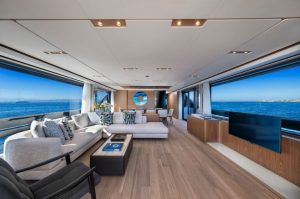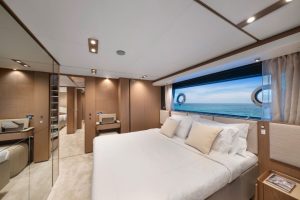 Inside, the yacht showcases contemporary Italian design, a hallmark of Ferretti’s renowned craftsmanship. The versatile interior layout allows owners to personalize the experience, seamlessly blending comfort with style.