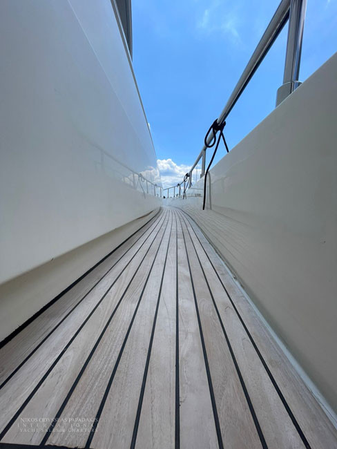 She accommodates up to 8 guests in 4 luxurious en-suite staterooms: a full-beam master suite with a queen-size bed and walk-in wardrobe, a forward VIP cabin with a double bed, and two twin cabins with single beds—each designed for maximum comfort and privacy.