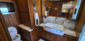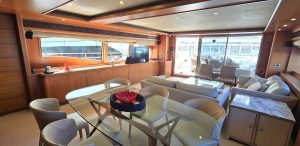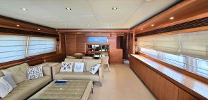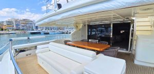 • Generous beam resulting in five generous staterooms and one of the most impressive beach clubs on the market