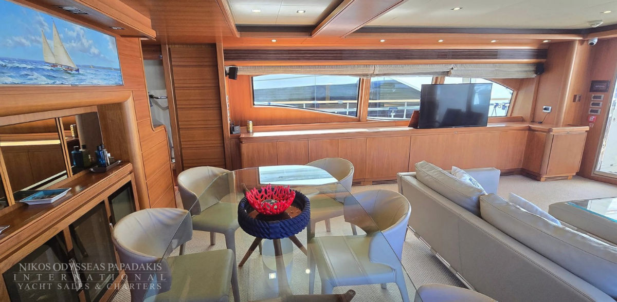 • Generous beam resulting in five generous staterooms and one of the most impressive beach clubs on the market