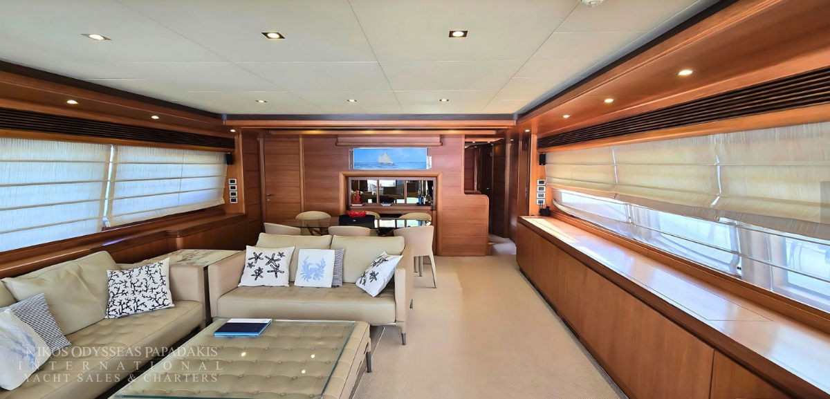 Ferretti Custom Line 97 yacht, delivered in 2009, showcases timeless styling by Zuccon International Project, combining refined elegance with iconic Italian craftsmanship. Powered by twin 2,440 HP MTU engines, she cruises smoothly and reaches thrilling top speeds of 27 knots. Designed for ultimate comfort, she accommodates up to 12 guests in 5 beautifully appointed staterooms and hosts a professional crew of 5 to ensure five-star service at sea. Maintained in excellent condition and fully turn-key, Ferretti Custom Line 97 is the perfect opportunity for her next discerning owner to enjoy unforgettable voyages.