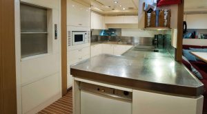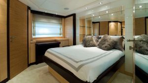 - The full beam Master stateroom is located on the main deck, with “his & her’s” en suite facilities.