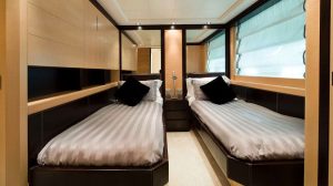 - Guests – Master stateroom, three VIP staterooms and one twin Crew 3 x double (twin beds), 1 x single (captain cabin) Guest cabins are located on the lower deck, all with en suite facilities.