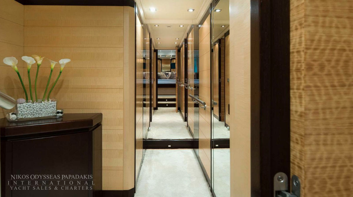 The yacht’s exterior architecture is the work of ISA Yachts, while the sophisticated interior was envisioned by Cristiano Gatto Design, blending contemporary luxury with timeless elegance. ISA 136ft. accommodates up to 11 guests in five lavish staterooms, including a spectacular 45 sq meter owner’s suite on main deck with a private Turkish bath, as well as four spacious guest cabins on the lower deck. Seven crew members, including the captain, are comfortably housed to provide impeccable service.