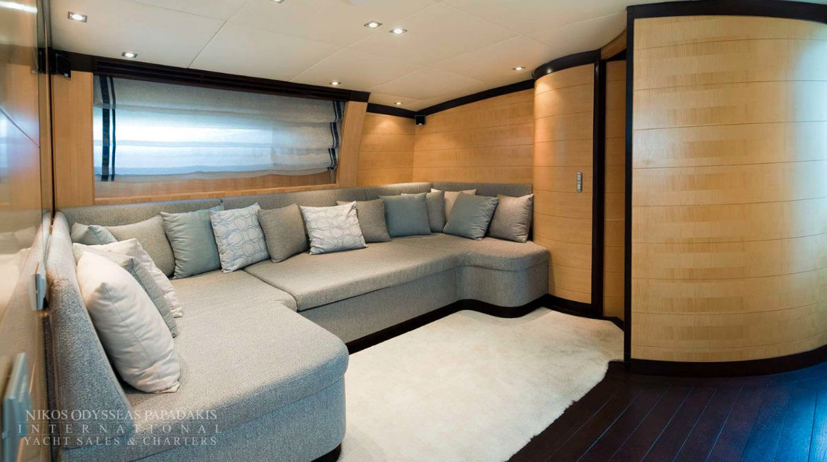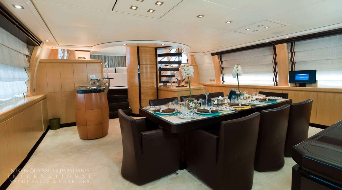 Onboard amenities include three expansive decks, a split-level main saloon and dining area for enhanced privacy, a second saloon on the upper deck, and generous exterior spaces on both the main deck aft and the sundeck—perfect for alfresco dining, entertaining, or sunbathing. Her layout is designed for both relaxation and socializing, making her the ideal superyacht for family cruising, luxury charters, or entertaining guests.