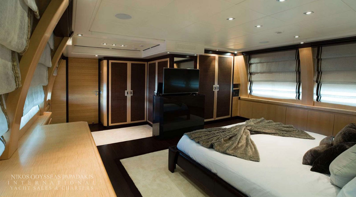 - The full beam Master stateroom is located on the main deck, with “his & her’s” en suite facilities.