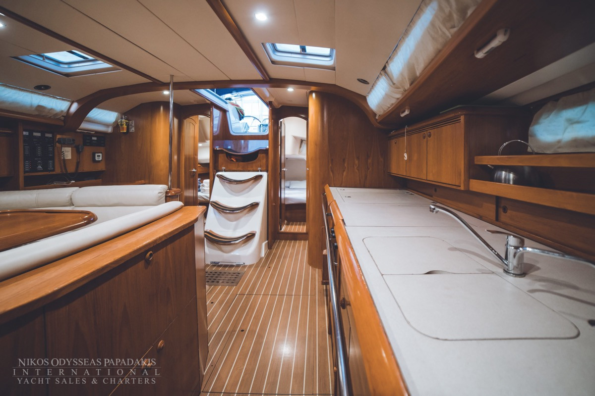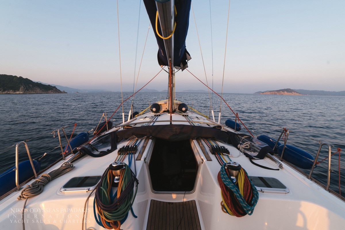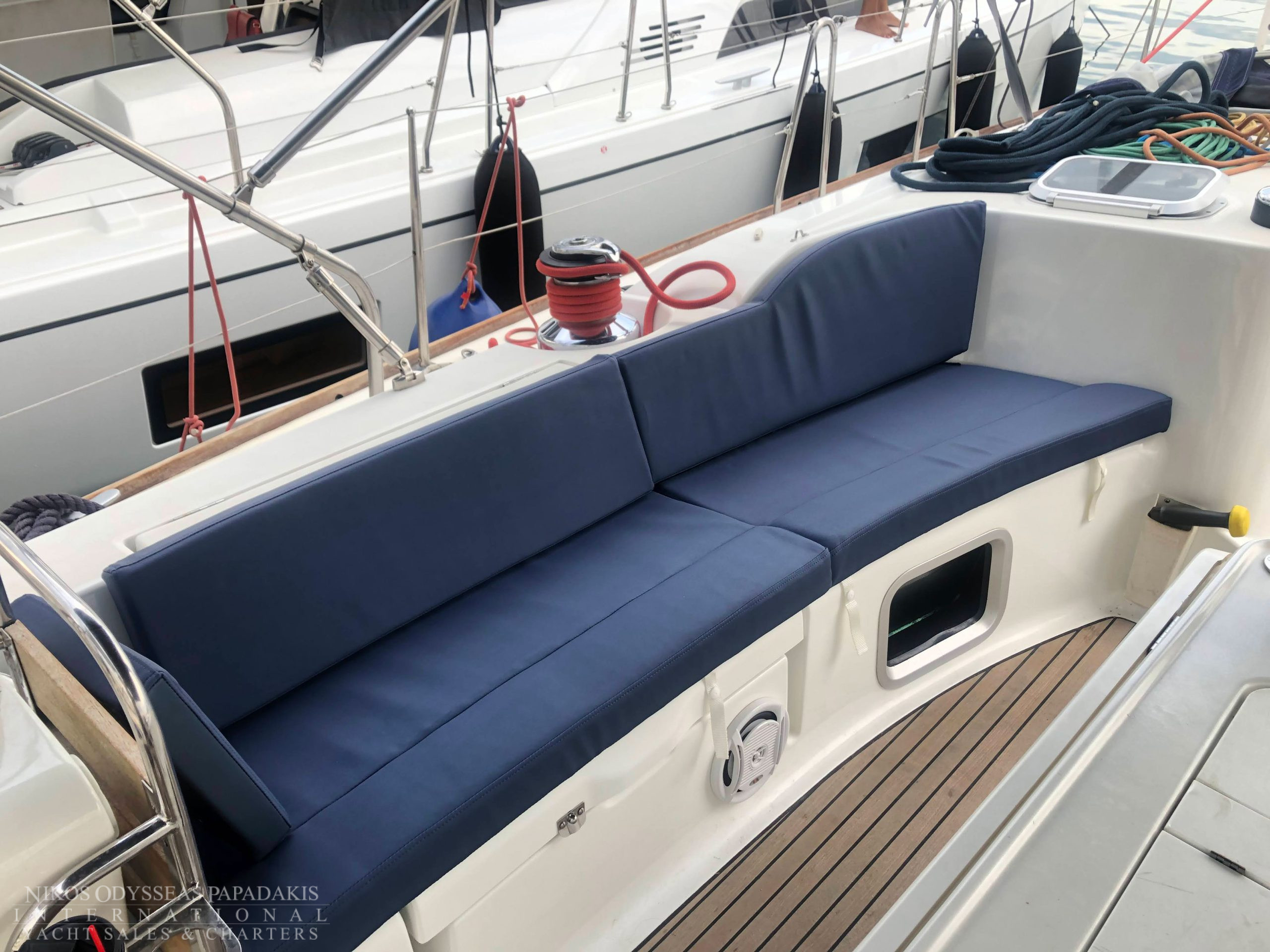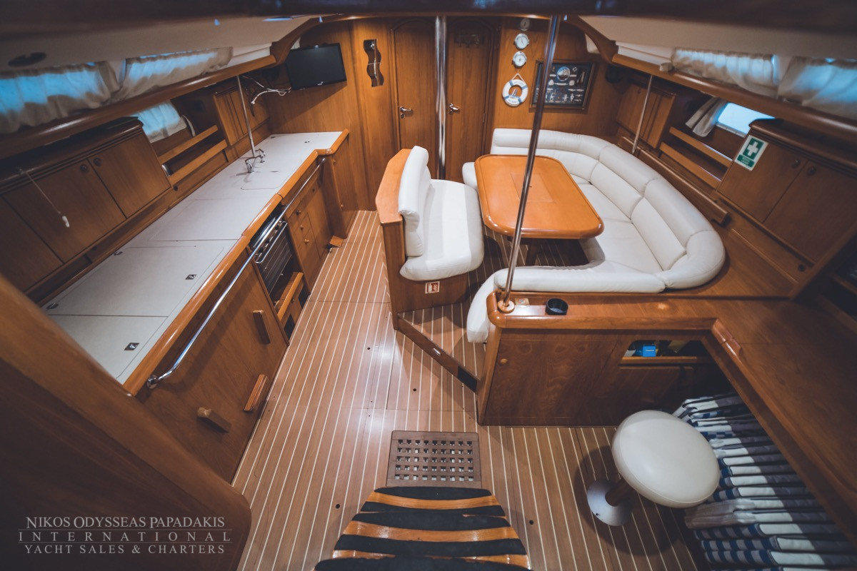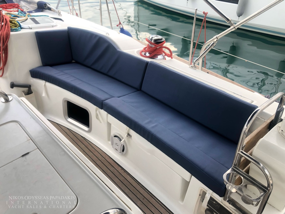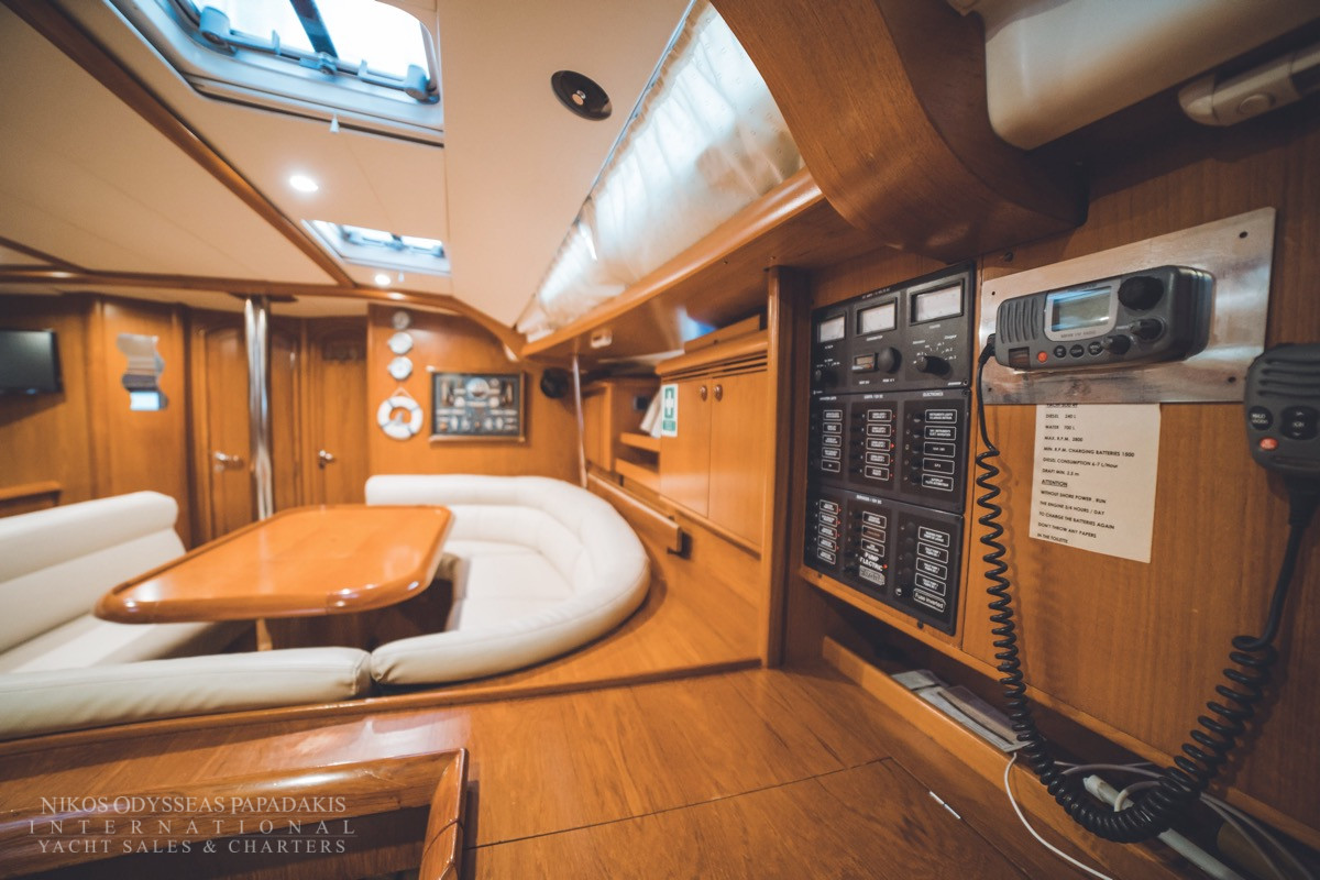 - Cockpit compass, Speed log, Echo sounder, Wind instruments, Hand bearing comp, Divider, Parallel ruler, Greek Water Pilot, GPS-Plotter Raymarine Axion 7 (stable and table), VHF, Clock, Barometer, Binoculars, Autopilot