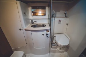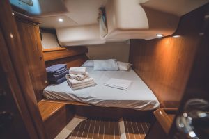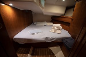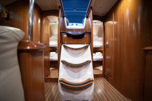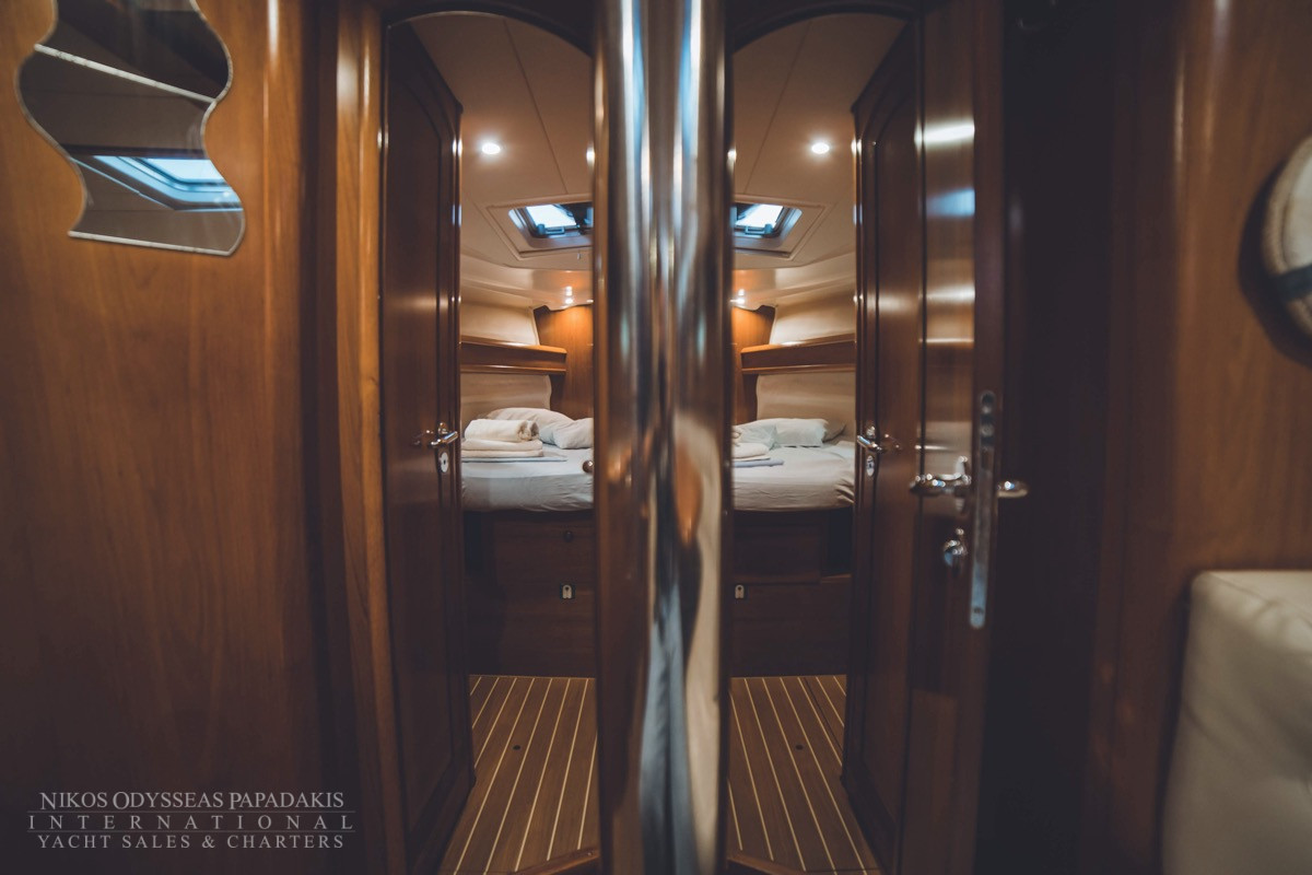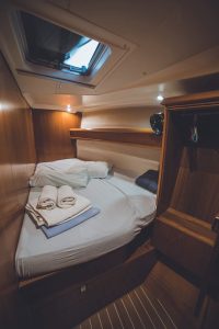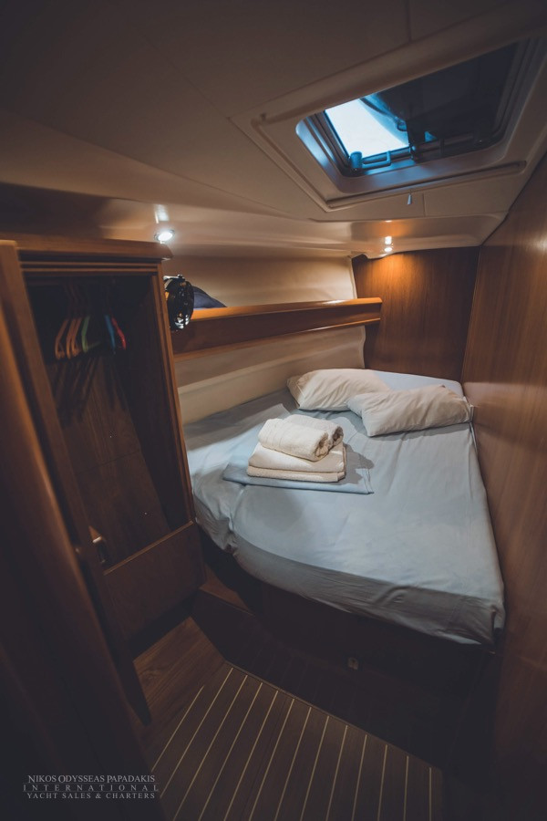 - It’s a 4 cabin – 4 WC model. Bow and Stern cabins are convertible also to a huge one.