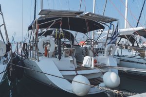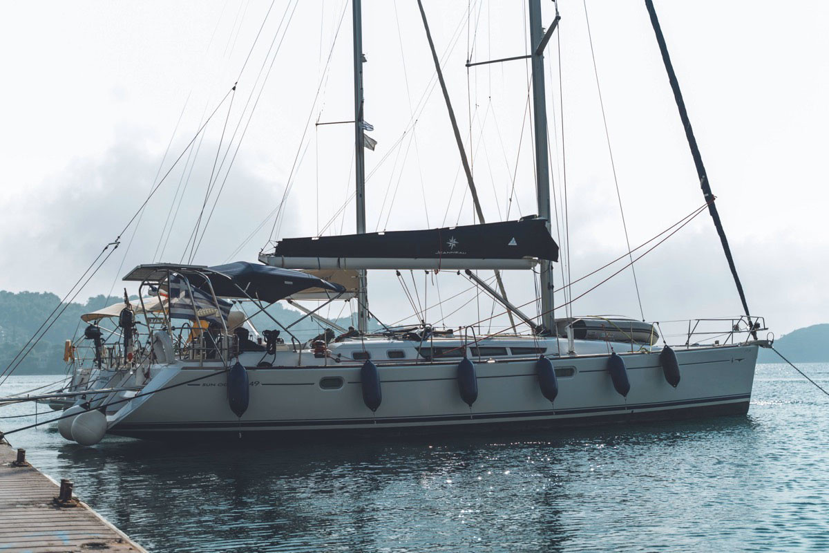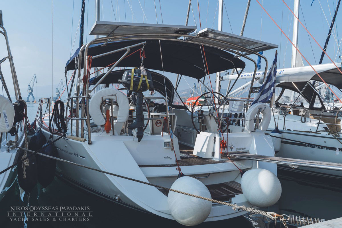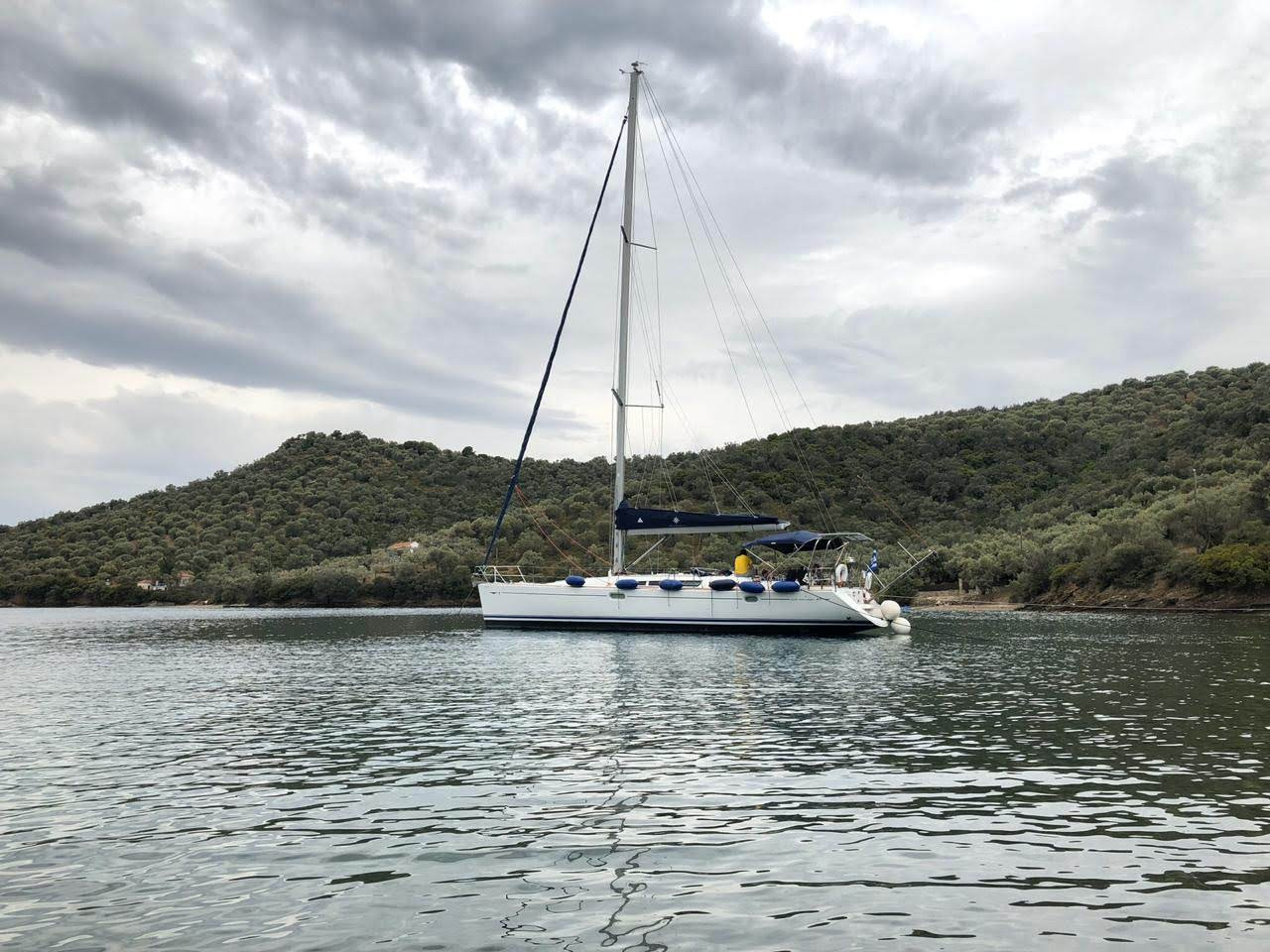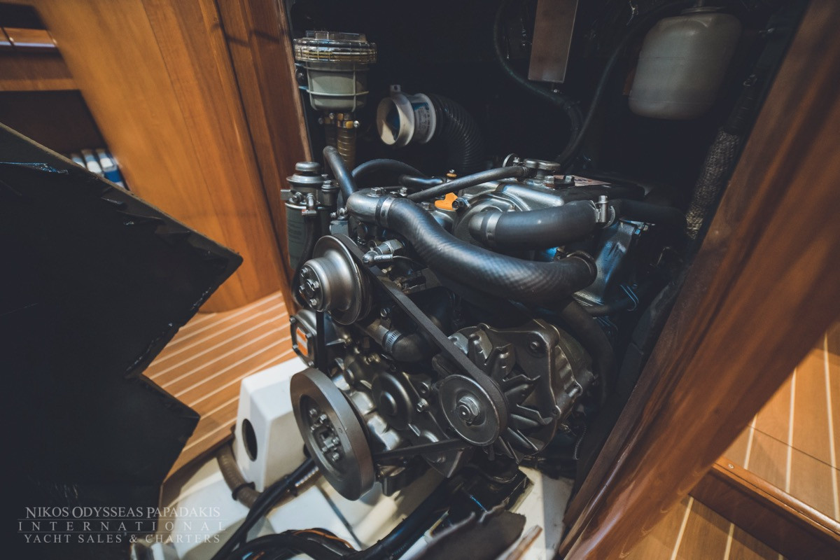 - Anchor windlass electric, Main anchor-chain, Fenders, Hand bilge pump and handle, Stable convertible Gangway, Swimming ladder, Door panels-keys, Boat hook, Winch handles, Dingh, pump, oars, Outboard motor, Plastic bucket, Water Jerrycan, Diesel Jerrycan, Engine oil, Fuel funnel, Deckbrush, Gas bottles, Spare Anchor, Mooring lines, Cockpit table, Inverter 220V, Stable Solar panels, Rollbar
