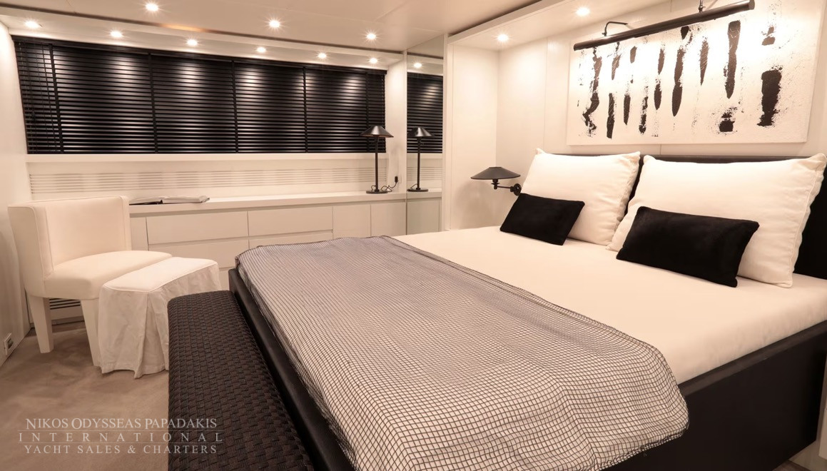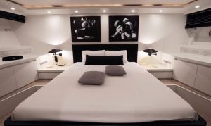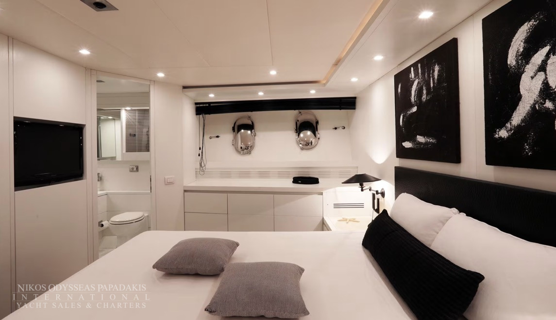 - Guest accommodation is located on the lower deck with the Owner full beam suite and a VIP cabin (both