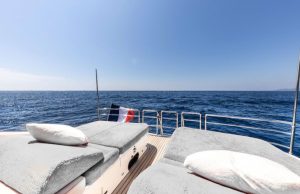The deck spaces invite relaxation and socializing, with generous sunbathing areas and a well-planned open-air dining space. Inside, the salon blends comfort and functionality, ensuring every moment on board is both enjoyable and effortless.