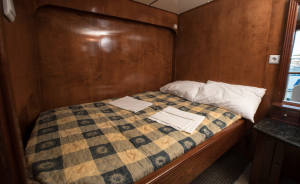 - Lower deck : Seven cabins with a double bed, three with a single bed two cabins with lower and upper deck. All with ensuite facilities