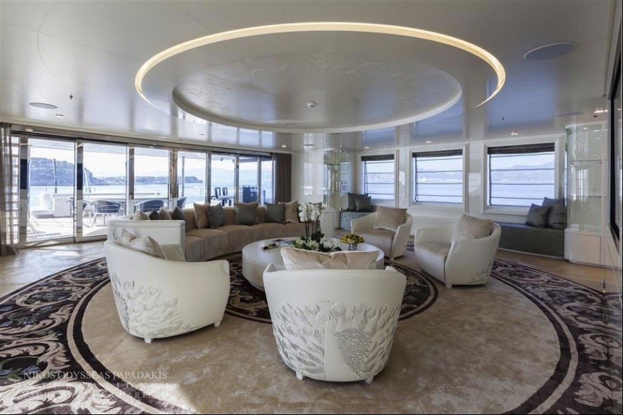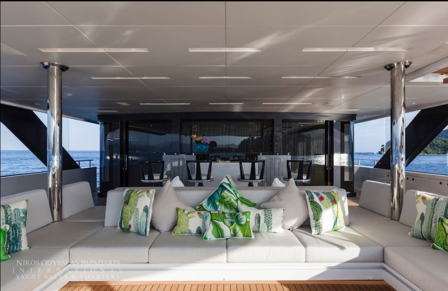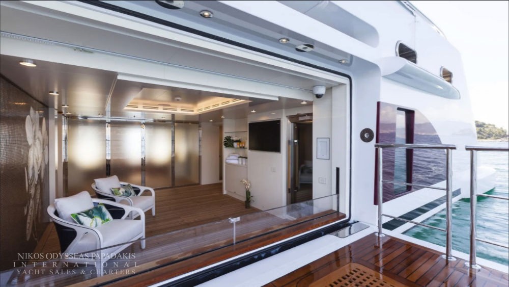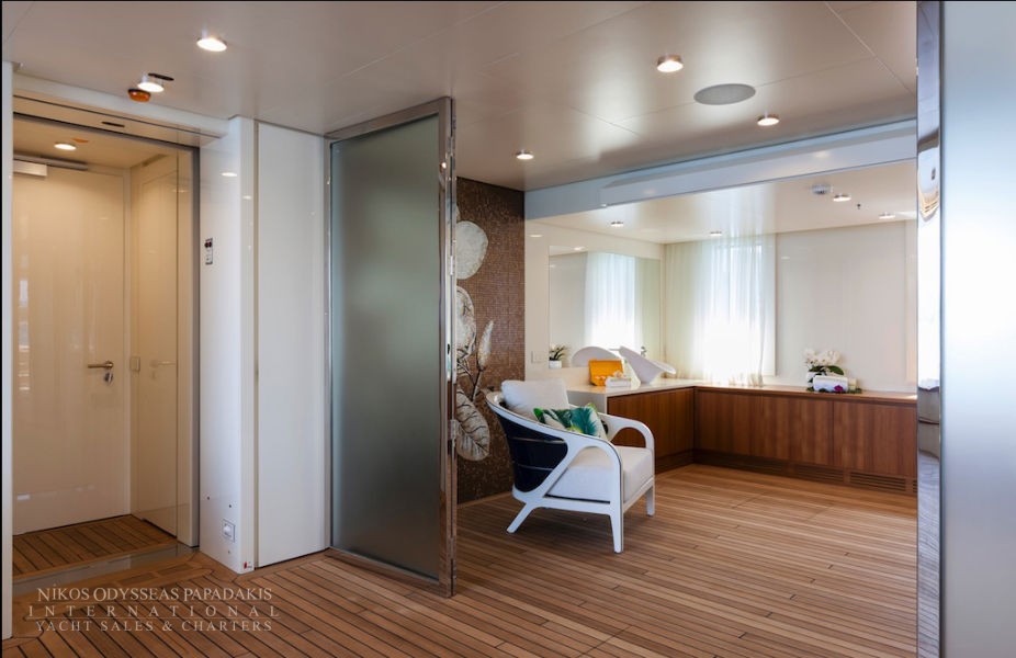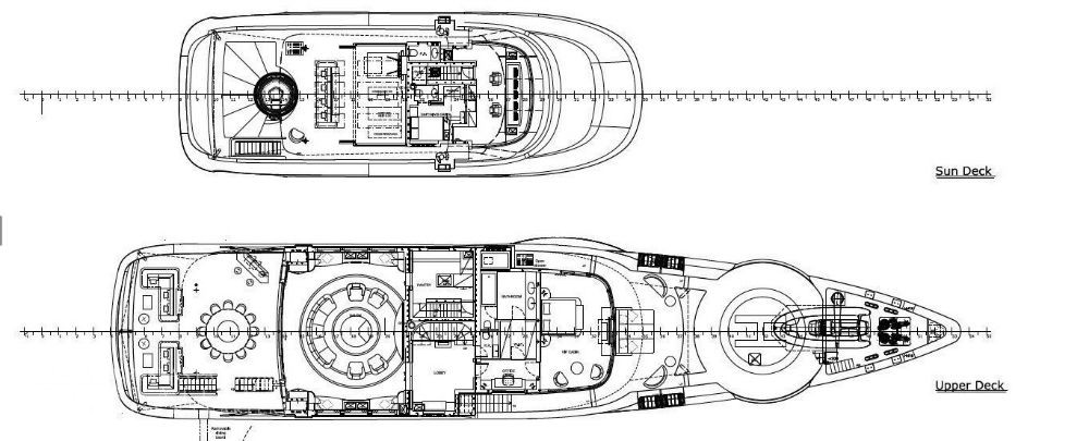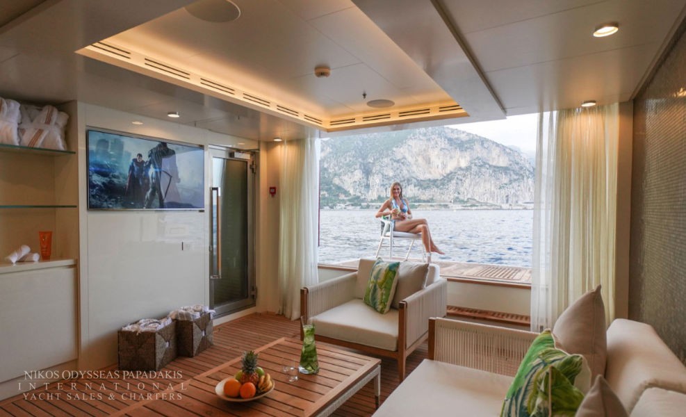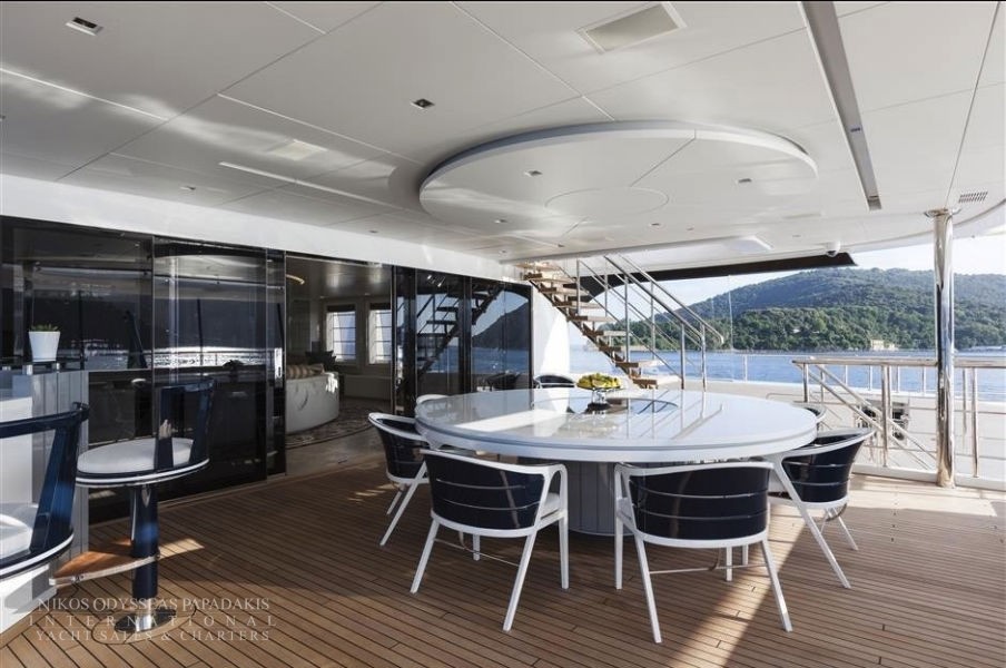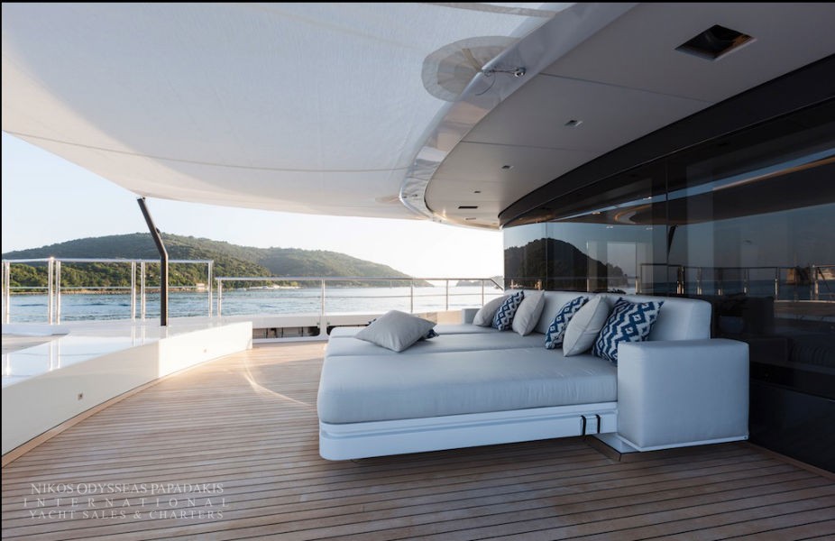 Foredeck touch and go helipad, aft pool and spa area with steam room, sauna and beauty studio.