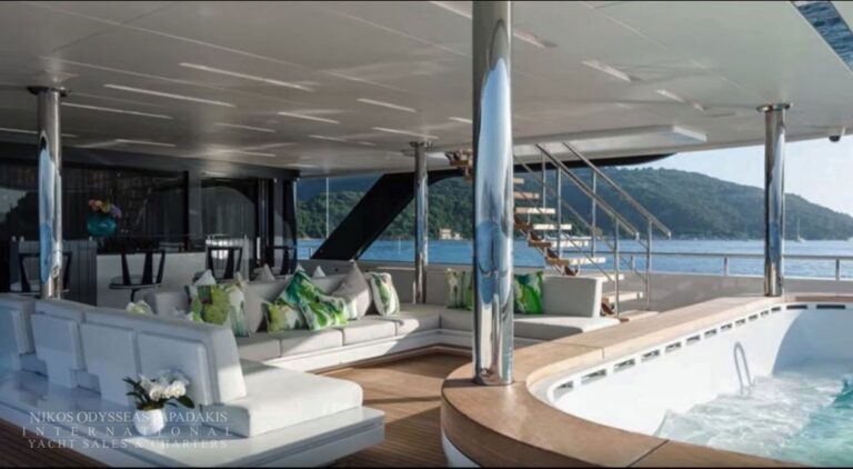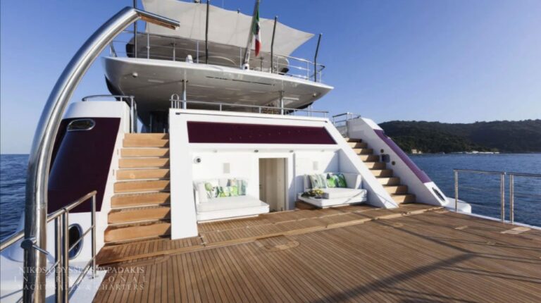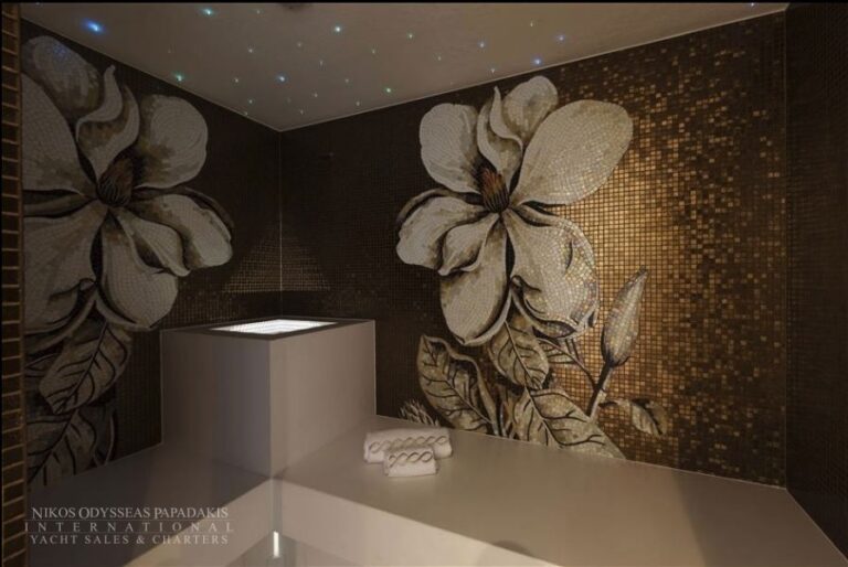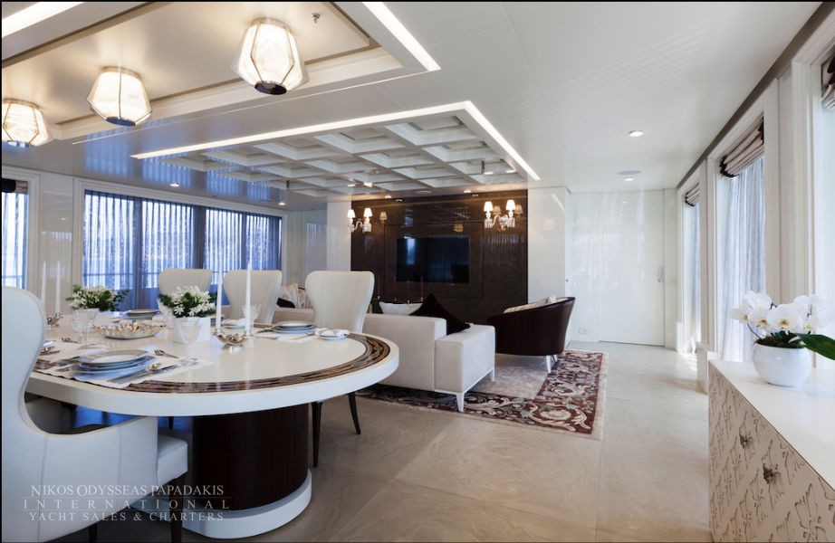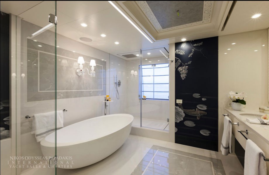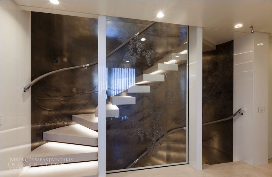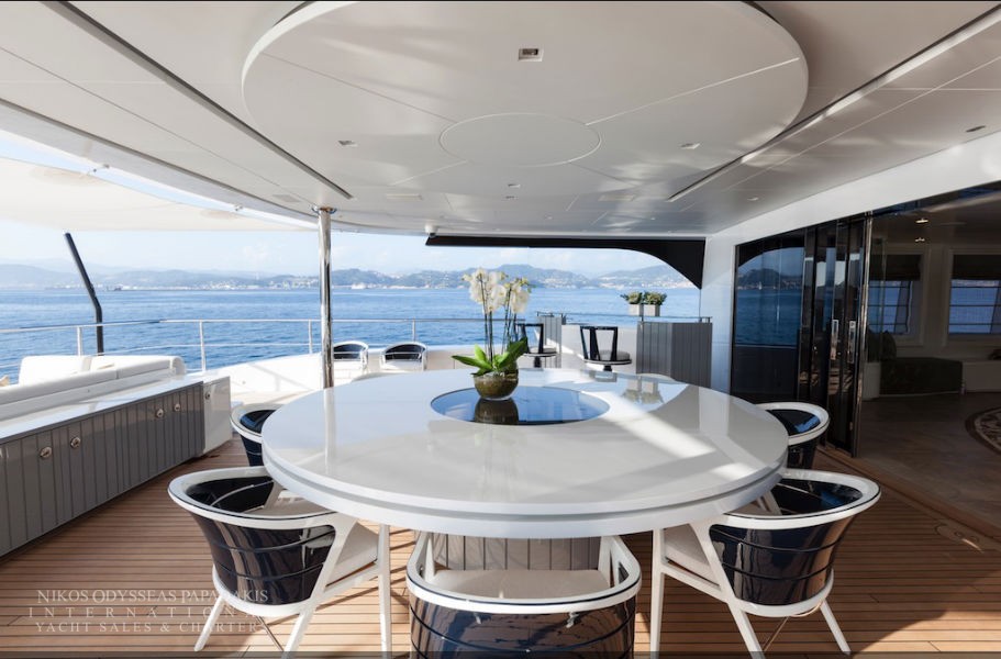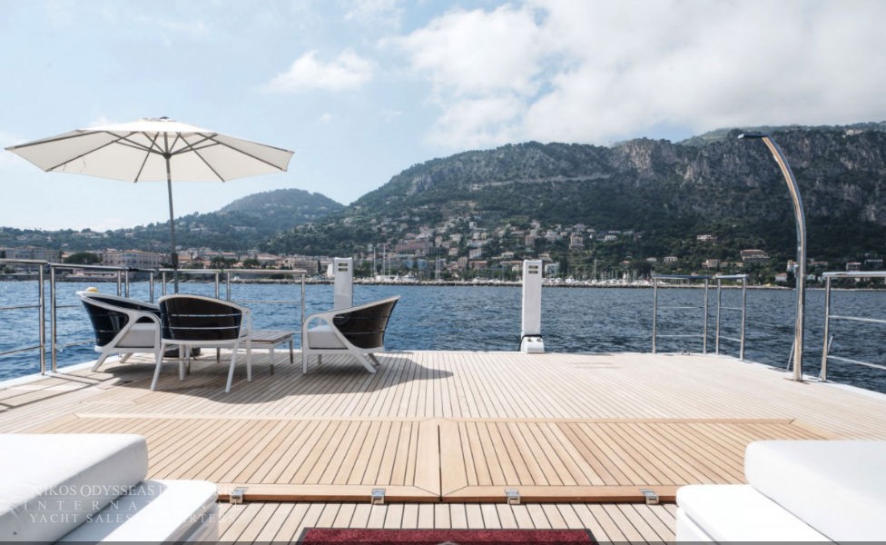 Foredeck touch and go helipad, aft pool and spa area with steam room, sauna and beauty studio.