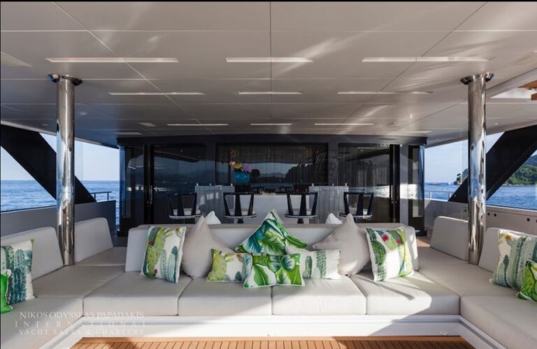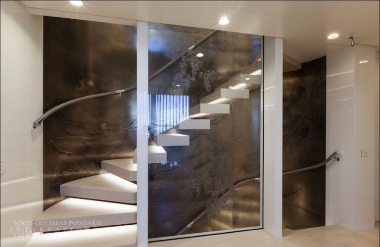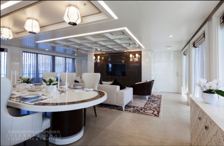 She cruises using only her two Auxilia electric motors, drawing power from variable-speed generators by Volvo. The yachts hybrid propulsion system consists of two generators and two electric motors, connected to the propeller shafts and to the boats two MAN diesel engines via a clutch.