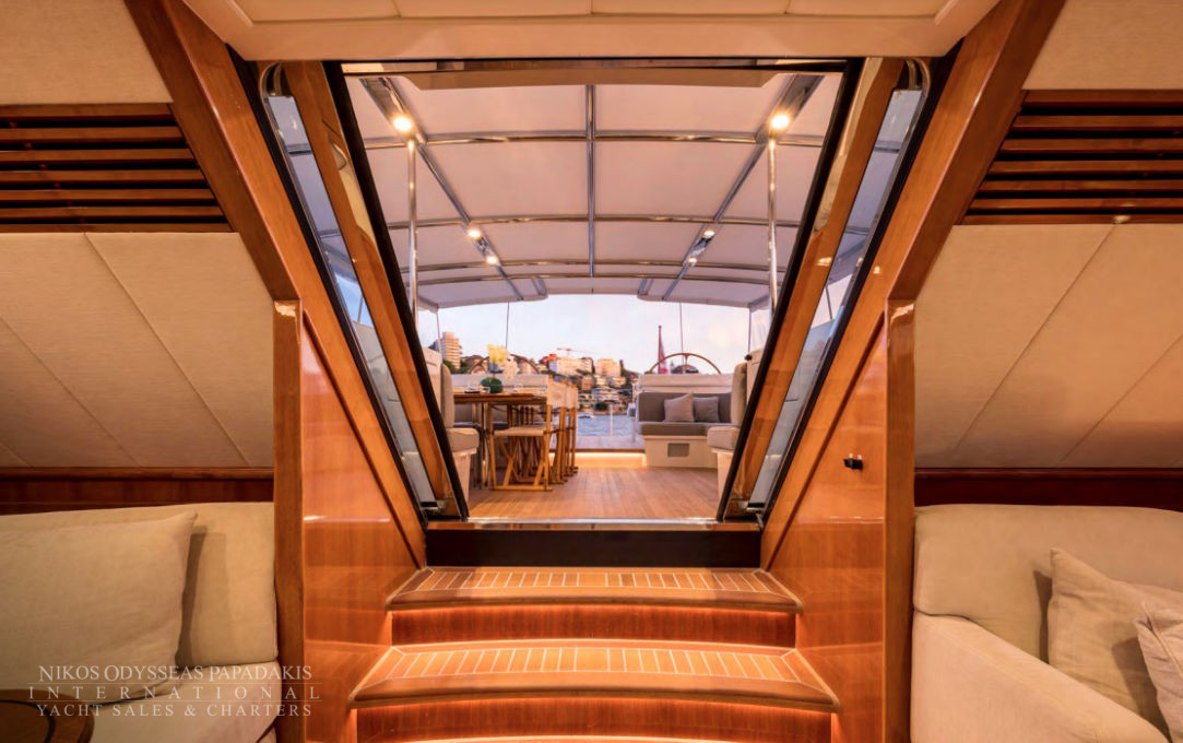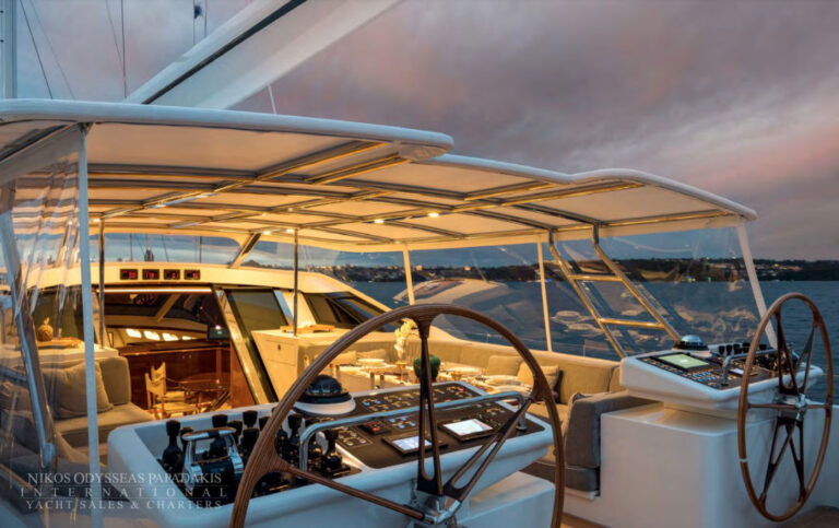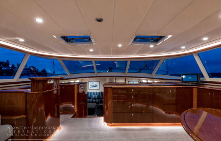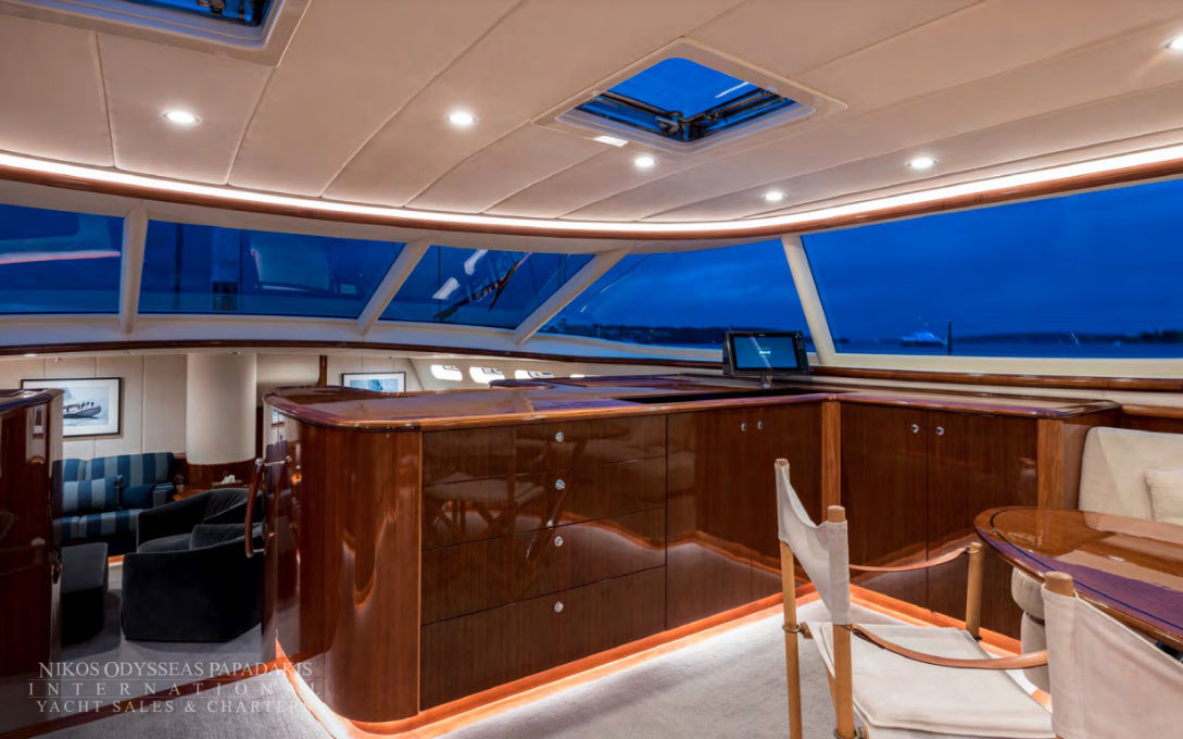 - Dual Steering Position In The Cockpit Have 2 X 48 Diameter Teak And Ash Laminated Wheels Finished With Carbon Fibre Driving A Wagner Power-Assisted Steering System La-1.83-35 2 X 3-Phase Pump Sets Which Provide Power And Can Be Controlled From The Cockpit, Autopilot And A Hand-Held Remote Control