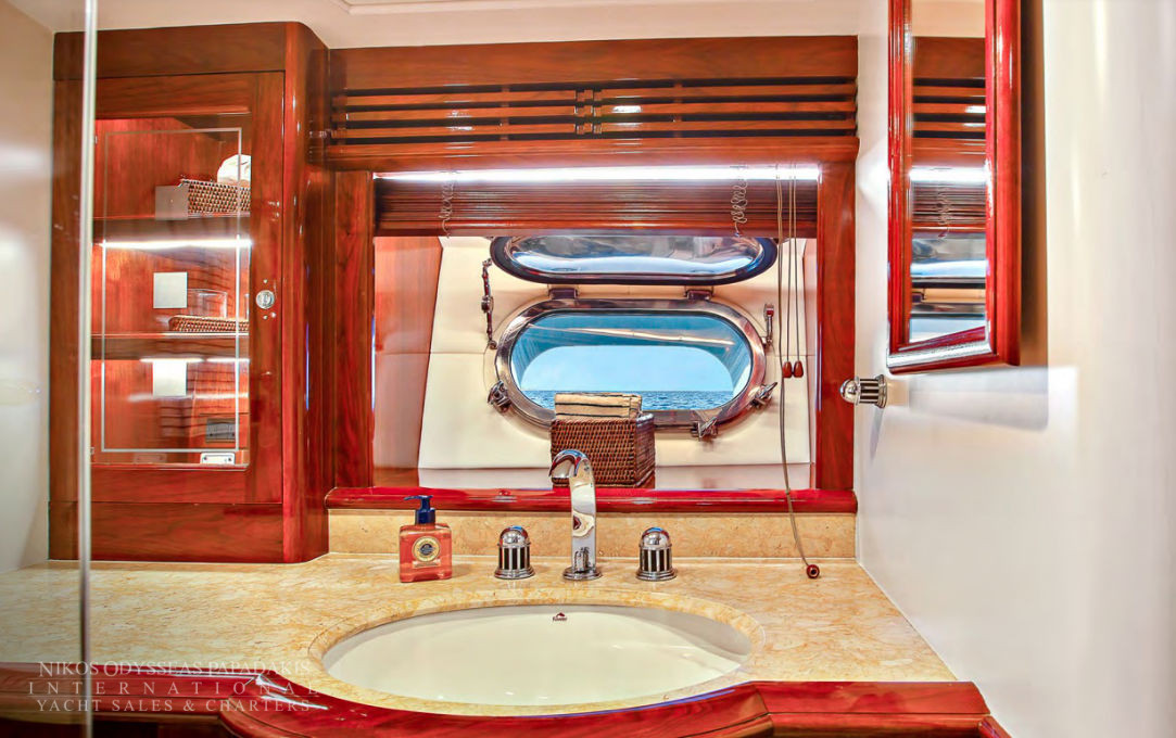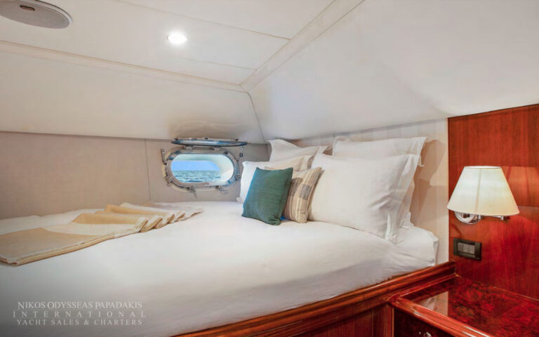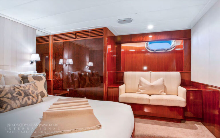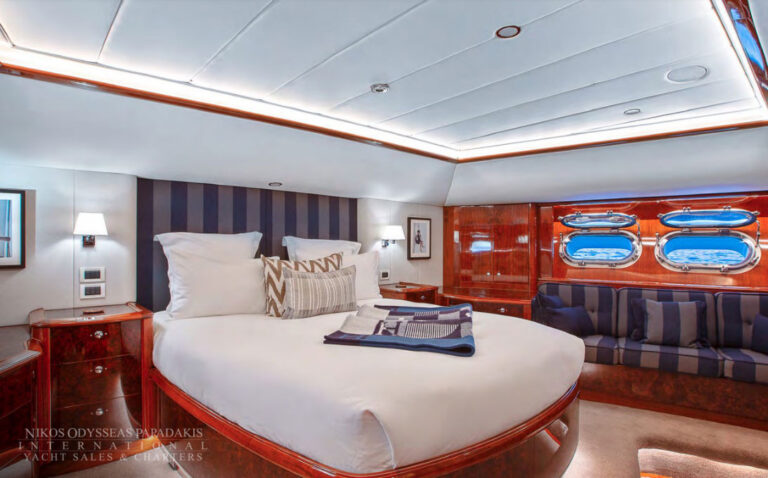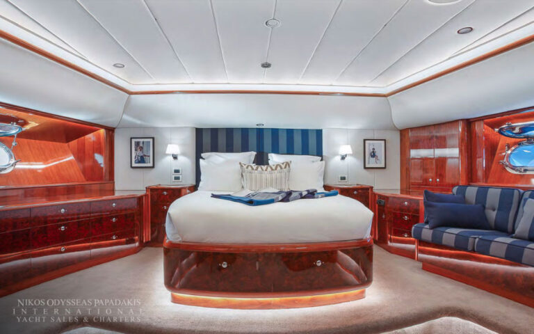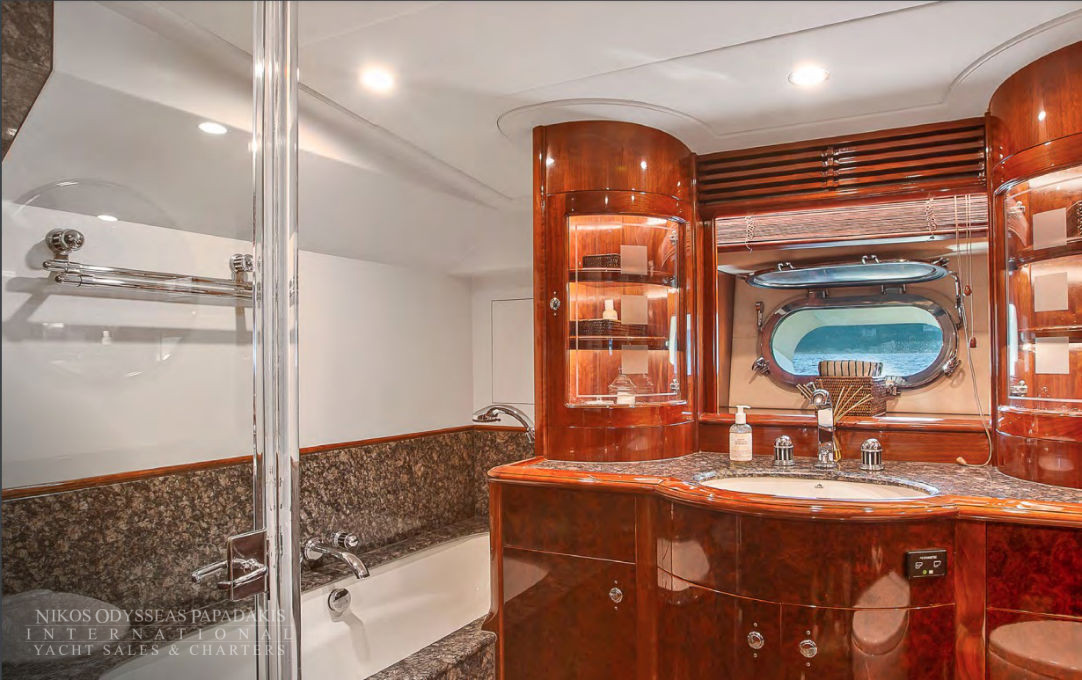 - Amidships Aft And Features A Centered King Berth And Ample Hanging Lockers. There Are Plentiful Drawers And Comfortable Sofa Seating. The Large En-Suite Bathroom Features Double Sinks, Shower, Bathtub And Toilet