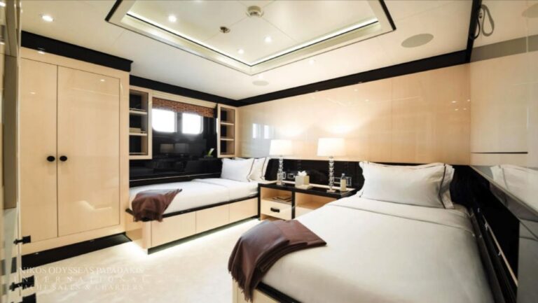 An impressive 55m motor yacht built by Amels. Accommodation for 12 guests in 5 cabins. Expansive sun deck with large Jacuzzi, sunpads, BBQ & backlit onyx bar. Fold-down balconies in the Owners suite & main salon.Master Suite with lounge, dressing room & steam shower . Spacious sky lounge with 110inch TV & oversized sofas Interiors in Macassar ebony & bleached maple with Lalique crystal details. Beach club with sauna. Fuel efficient performance. Generators and exhaust treatment system rebuilt May 2019.