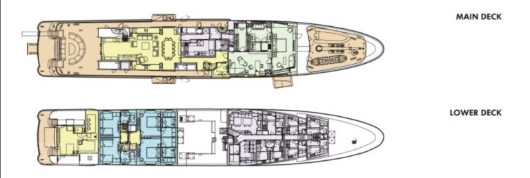 Accommodation : 12 guests in 5 cabins, 13 crew in 3 single cabins and 5 double cabins