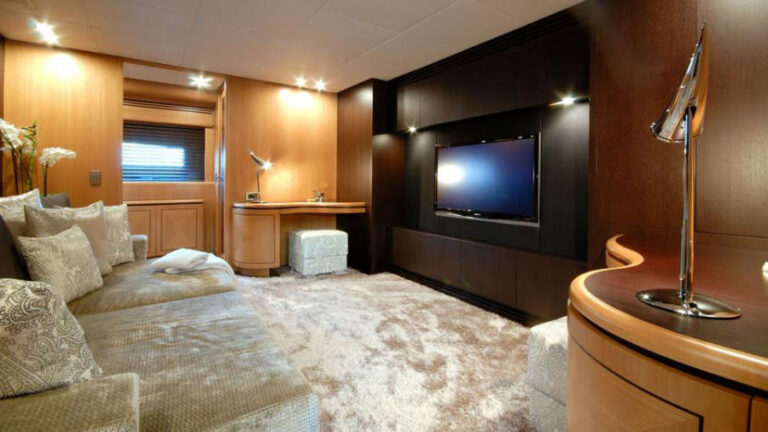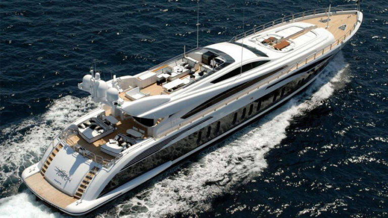 Arno Leopard 46.20m. a superb performance yacht launched in 2009. She features five cabins lay out, Master Suite and Cinema lounge on the main deck forward. Arno Leopard 46.20m is an impressive stylish super yacht with Swimming pool, Movie Cinema, Large Sundeck, Great selection of water toys.