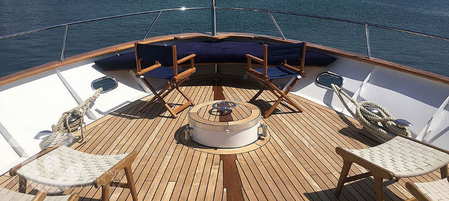 Designed for extended voyages and proven on long passages, this Codecasa 34m motor yacht provides accommodation for up to 10 guests in four spacious cabins, complemented by well-appointed crew quarters. Her inviting deck spaces feature a large alfresco dining area on the main deck, a flybridge bar with ample seating, and an oversized bathing platform offering effortless access to the sea.
