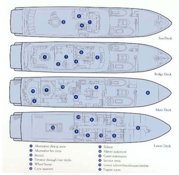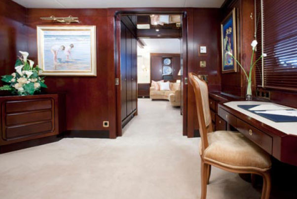 This custom displacement yacht is equipped with an ultra-modern stabilization system which reduces roll motion effect and results in a smoother more enjoyable cruising experience. She also features bow thrusters making her more manoeuvrable at low speeds. She is built to comply with MCA and LR standards. She was last refitted in 2008. She offers accommodation for up to 10 guests in five suites comprising one owners cabin, two double cabins and two Pullman berths. She is also capable of carrying up to 11 crew members onboard. VAT PAID.