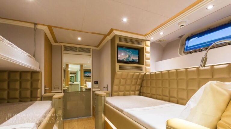 - All guest cabins have entertainment centers, television screens and en-suite bathroom facilities while crew quarters are for six members.