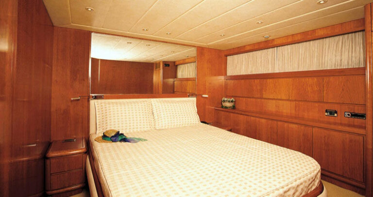 - One full beam Master cabin that features a queen sized bed, a walk-in wardrobe, an en suite bathroom, full air-conditioning and audio/video entertainment center.
