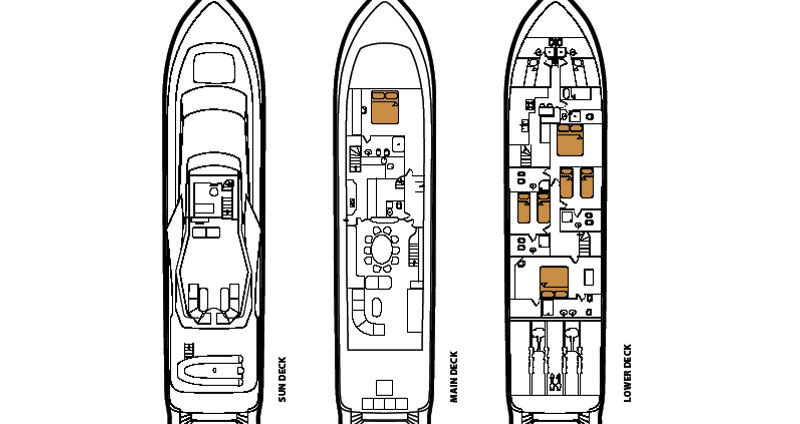 - Two Twin cabins on the lower deck. En-suite facilities in all cabins.