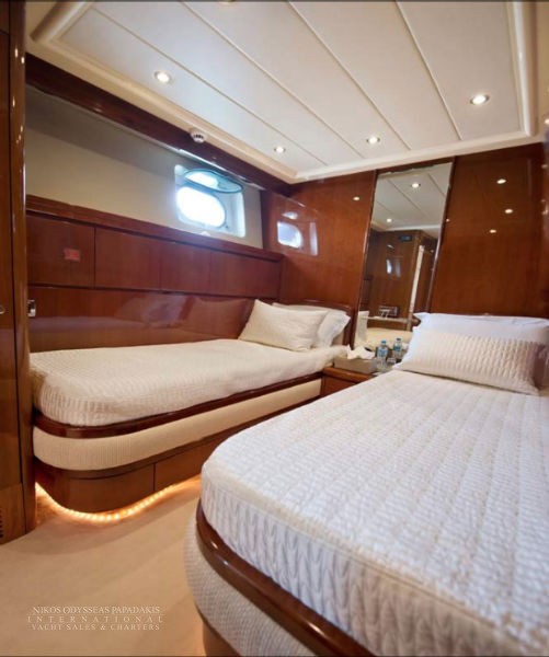 bed, a VIP cabin with queen size bed, a Double cabin and two twin cabins each with one extra pull man berth, all with ensuite facilities. Falcon 100 is maintained in very good condition.