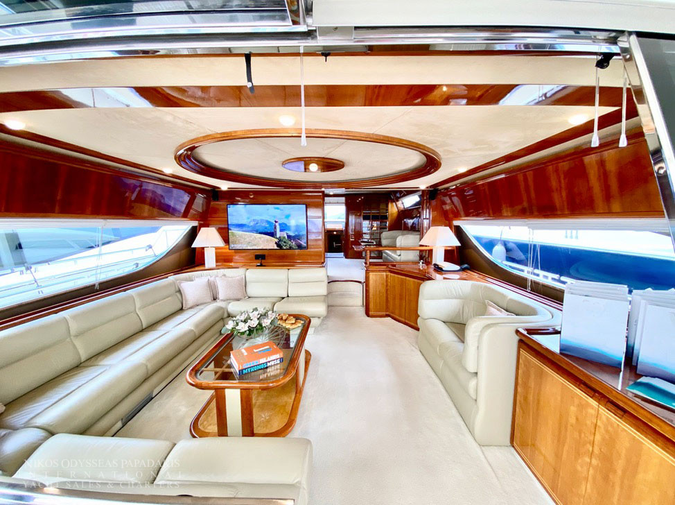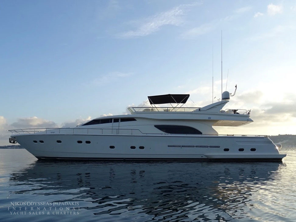 Built by Ferretti, Italy, in 2000 and she completed a great refit in 2018. The size of the Ferretti 80 has been carefully selected to remain under the 24-meter limit. With its length of 23.98 meters, the 80 is in the leisure craft category. Developed from the Ferretti 225, the excellent performance has not only been retained but enhanced.
