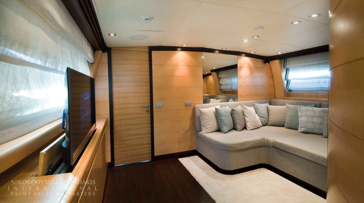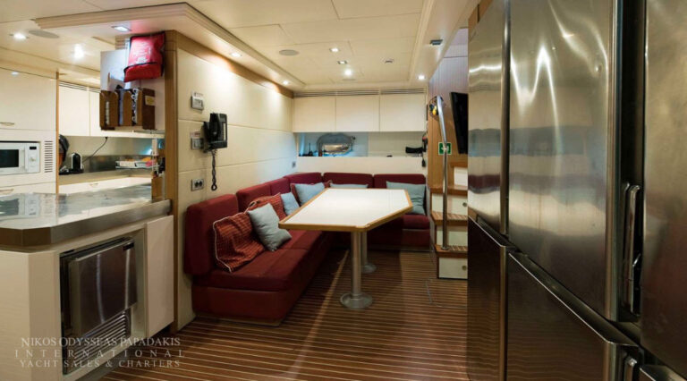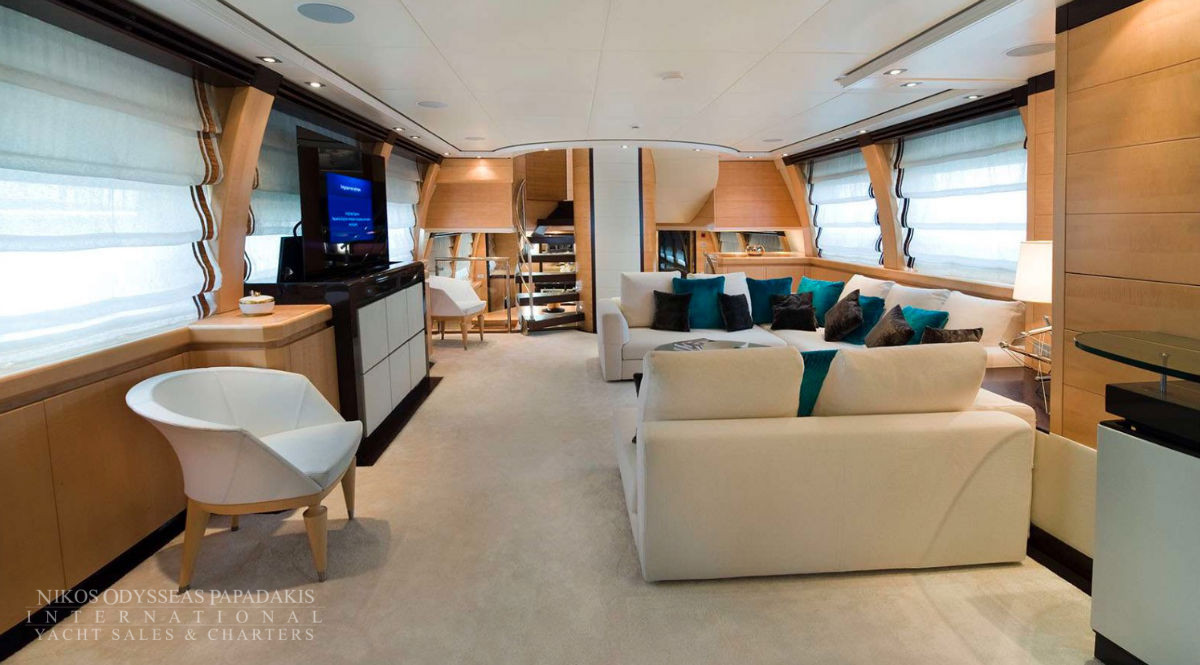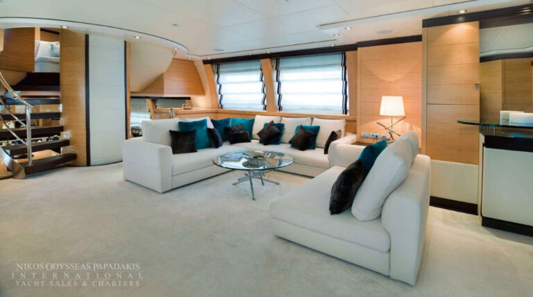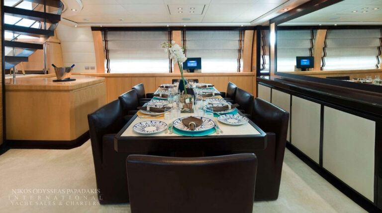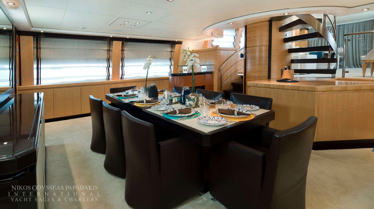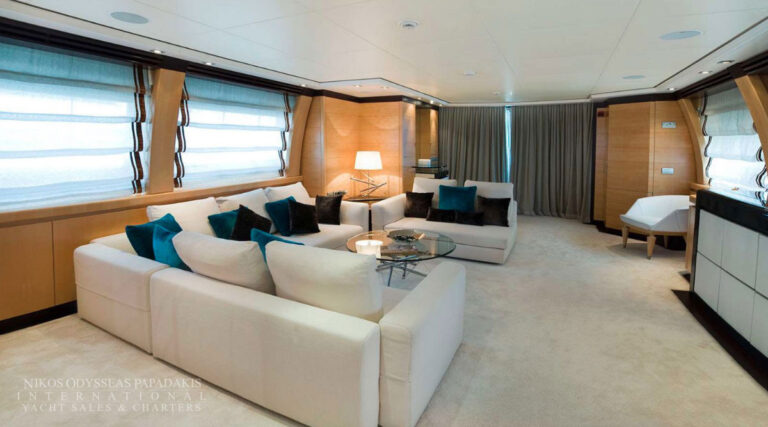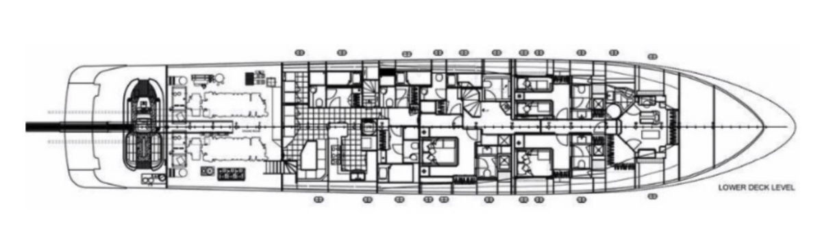 Onboard amenities include three expansive decks, a split-level main saloon and dining area for enhanced privacy, a second saloon on the upper deck, and generous exterior spaces on both the main deck aft and the sundeckperfect for alfresco dining, entertaining, or sunbathing. Her layout is designed for both relaxation and socializing, making her the ideal superyacht for family cruising, luxury charters, or entertaining guests.