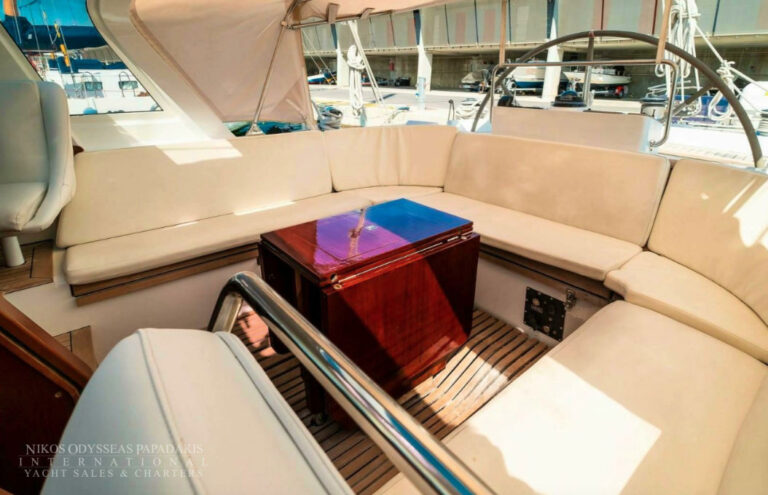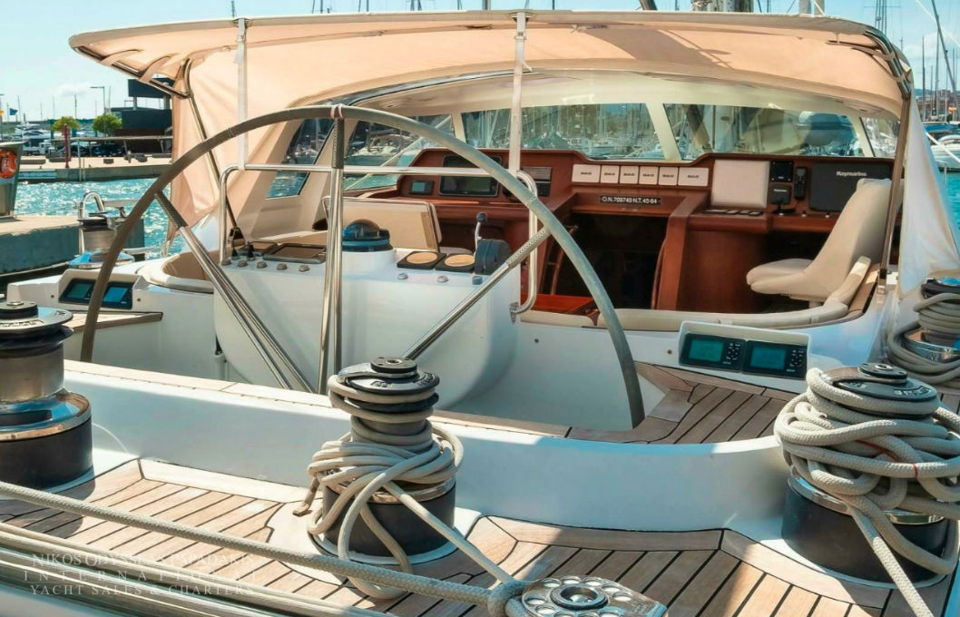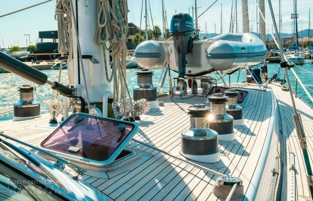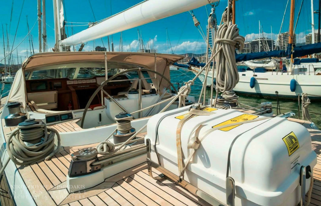 Safety is a priority aboard this Jongert 2200 pedigree sailing yacht. All safety equipment was thoroughly updated in 2018, providing peace of mind for everyone on board. The cockpit is enhanced with a new bimini and sun awning, also installed in 2018, offering shade and comfort during sunny days at sea.