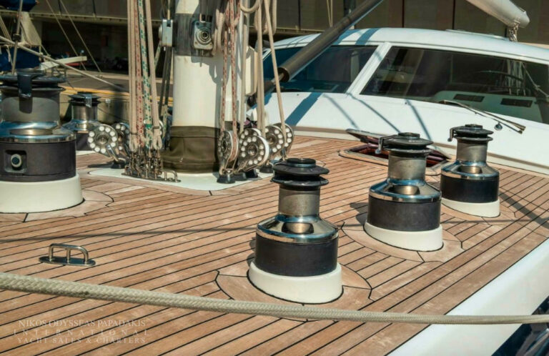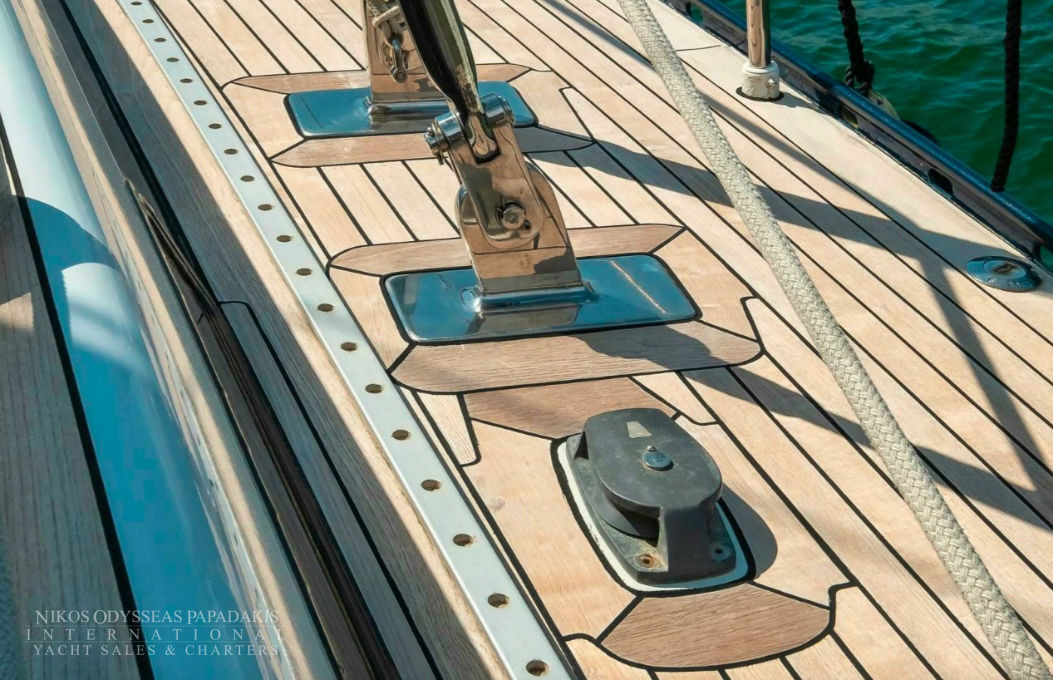 On deck, the Jongert 2200 features top-quality LEWMAR hardware, including hatches, winches, and anchors. Additional equipment such as a hydraulic windlass, gangway, and deck-wash system ensure effortless operation and comfort during your sailing adventures.