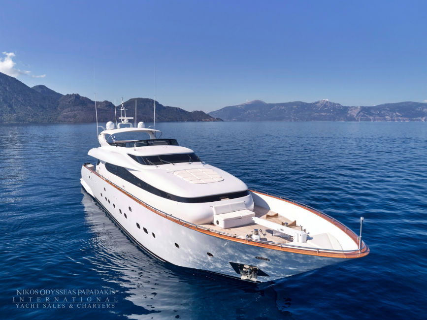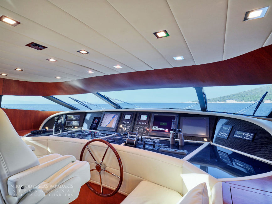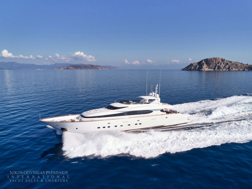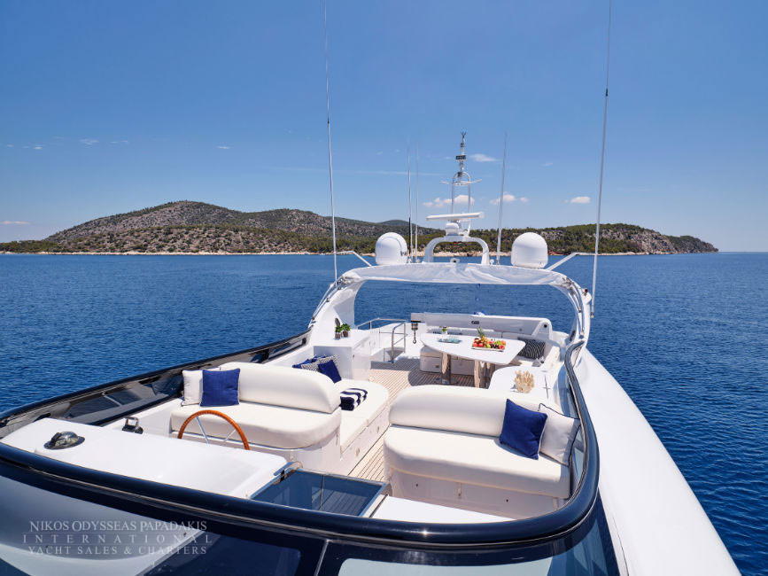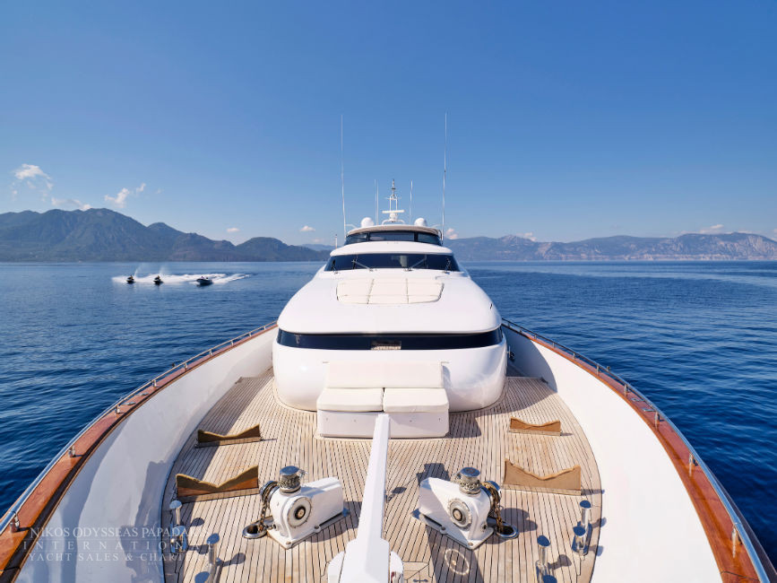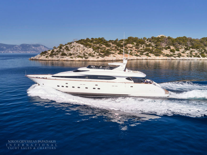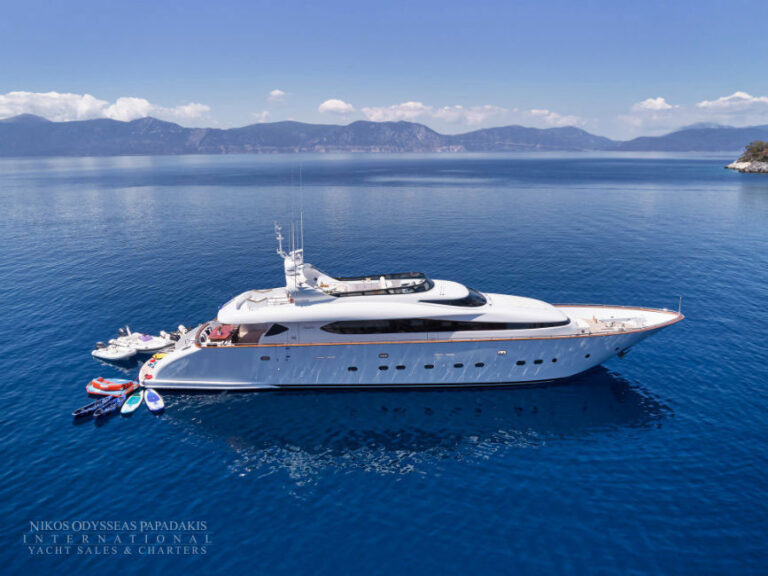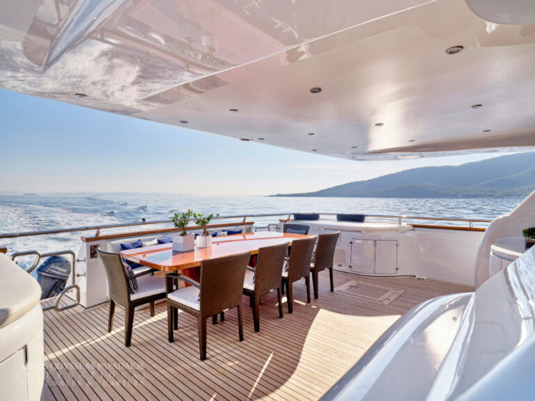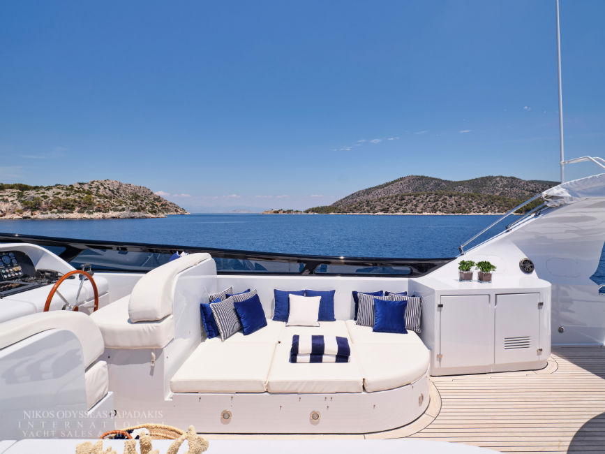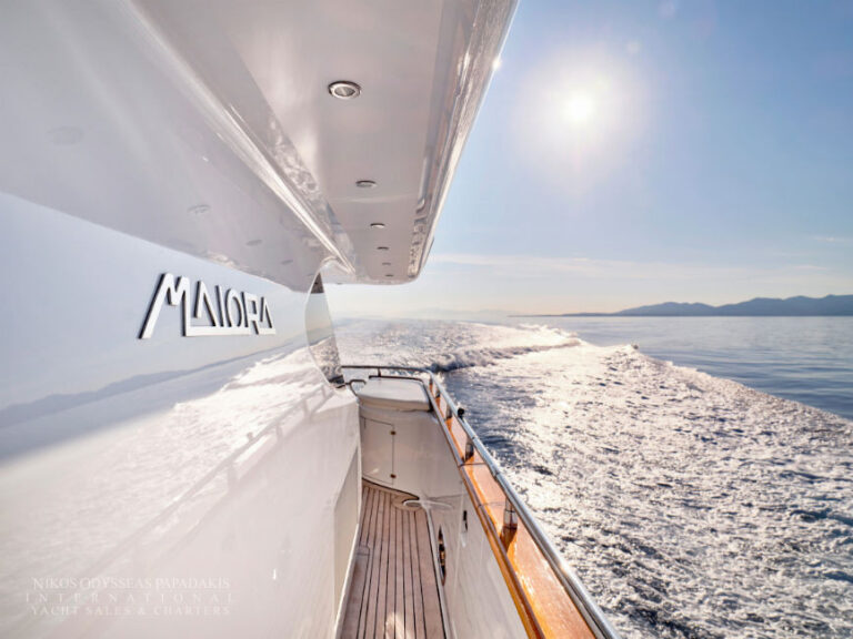 Discover the elegance of Maiora 33 DP, a 2010-built luxury motor yacht for sale in immaculate condition. Designed for comfort and performance, she accommodates up to 12 guests in three spacious double staterooms and two versatile convertible cabins with Pullman berths. Maiora 33 DP is powered by twin 2400hp MTU engines, she cruises effortlessly at 24 knots with a top speed of 27 knots, offering the perfect blend of speed, style, and sophistication for unforgettable journeys at sea.