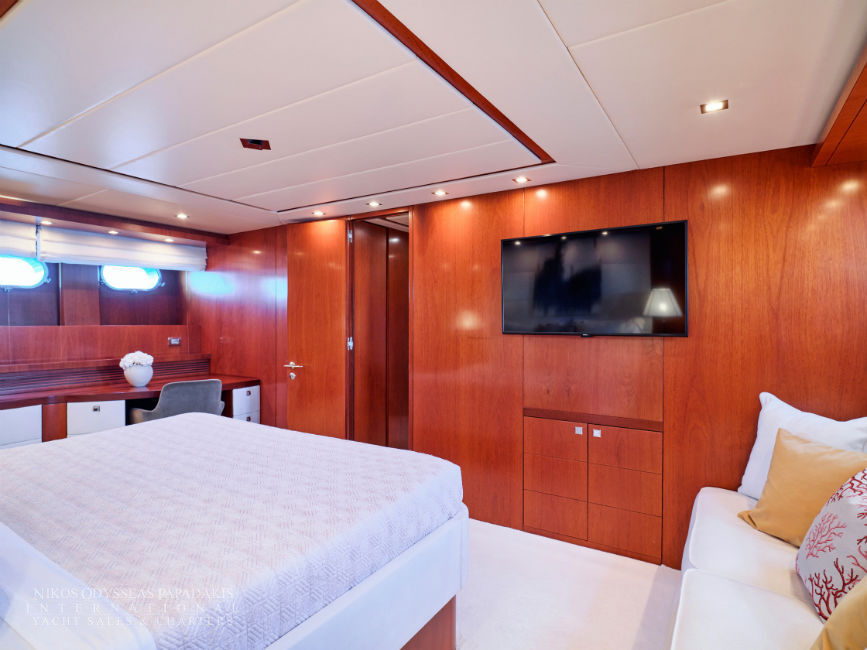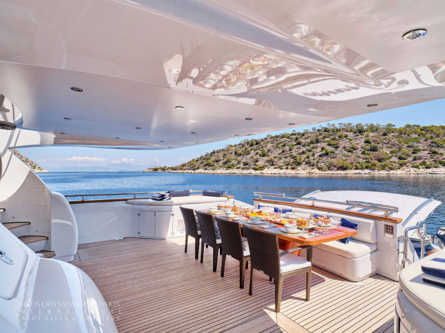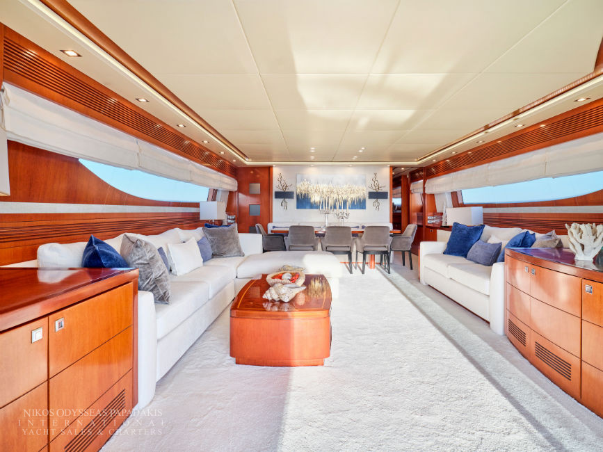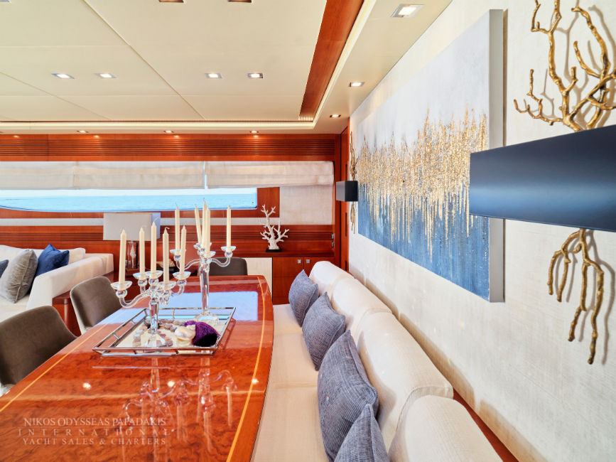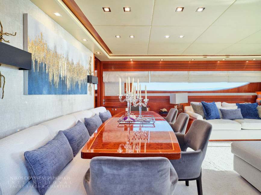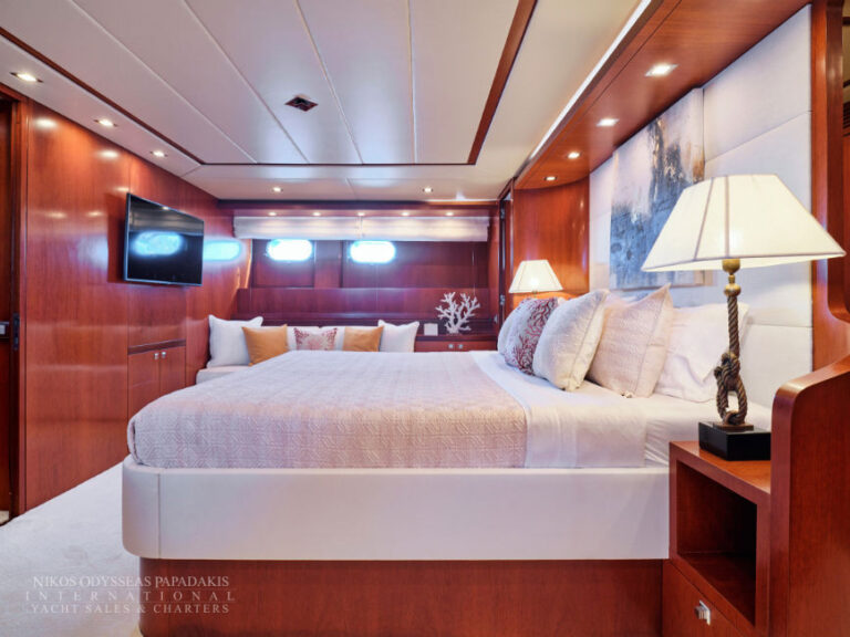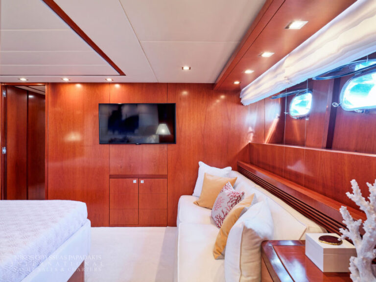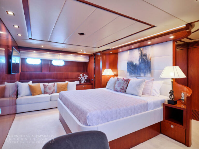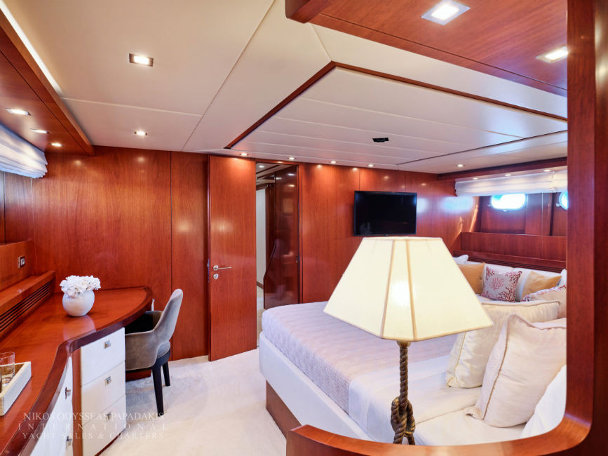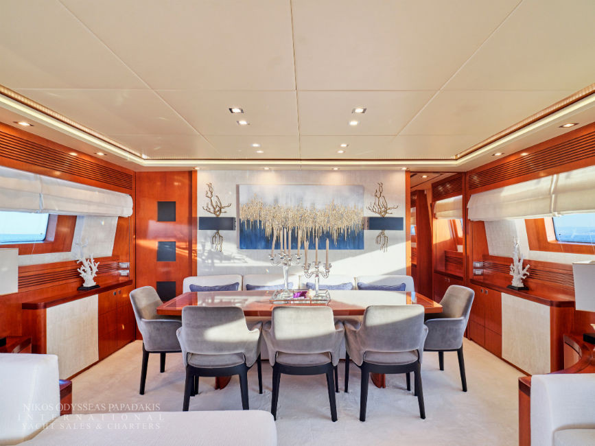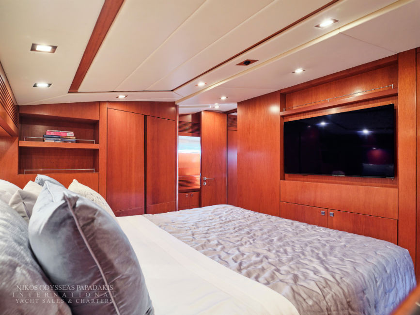 Discover the elegance of Maiora 33 DP, a 2010-built luxury motor yacht for sale in immaculate condition. Designed for comfort and performance, she accommodates up to 12 guests in three spacious double staterooms and two versatile convertible cabins with Pullman berths. Maiora 33 DP is powered by twin 2400hp MTU engines, she cruises effortlessly at 24 knots with a top speed of 27 knots, offering the perfect blend of speed, style, and sophistication for unforgettable journeys at sea.