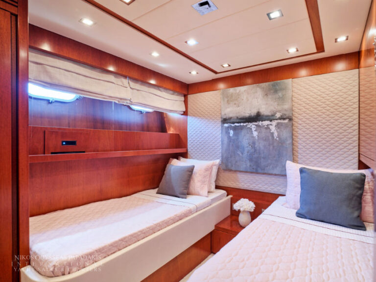 - Crew accommodation : 6 crew members in 3 cabins 2 WC 1 triple, 1 double