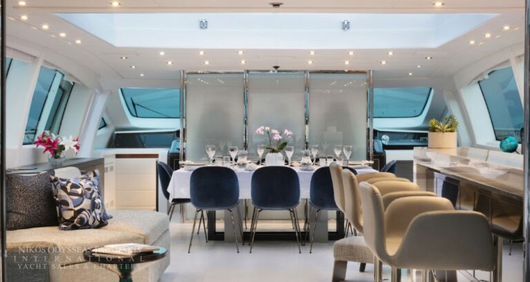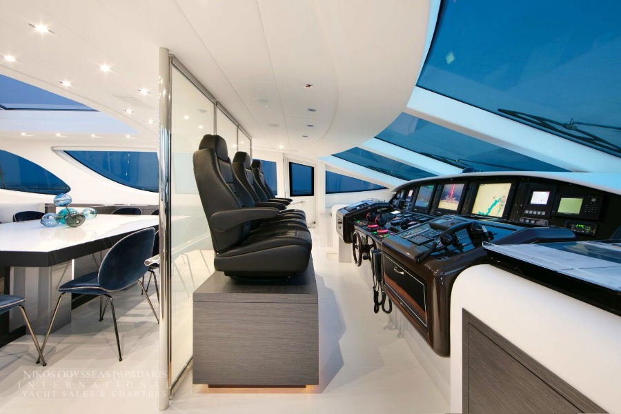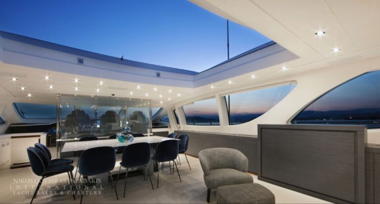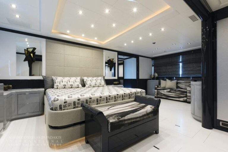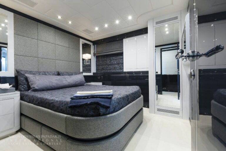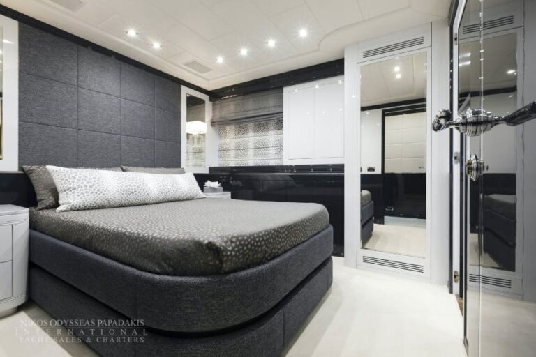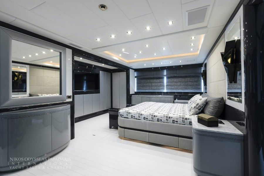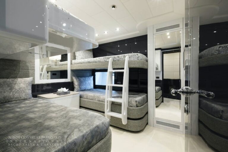 Accommodation up to 12 guests in the utmost comfort of five beautifully appointed staterooms. This Mangusta showcases a sensational, full-beam master stateroom, three double-bed staterooms and a twin stateroom with a bunk bed and Pullman. All with en suite facilities.