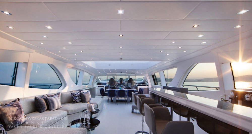 • Spacious salon with retractable roof and bar
