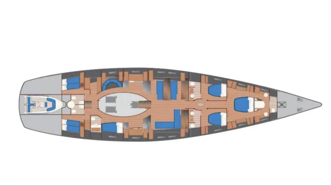 - Accommodates six guests in three staterooms and up to 5-6 crew in three cabins